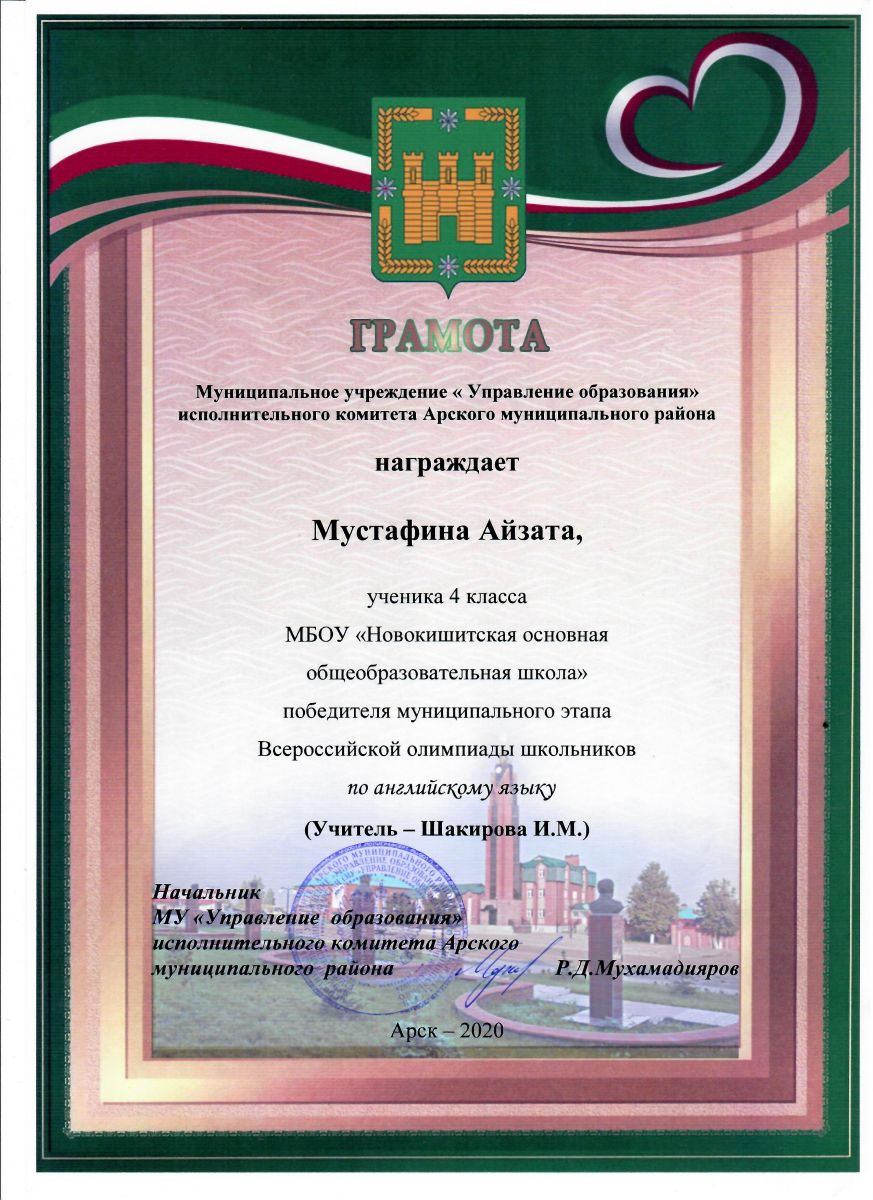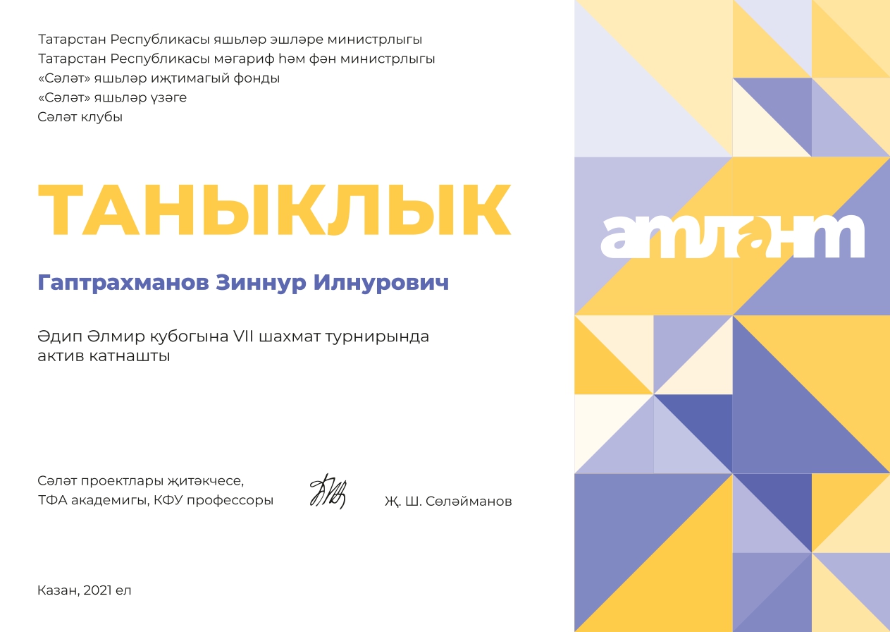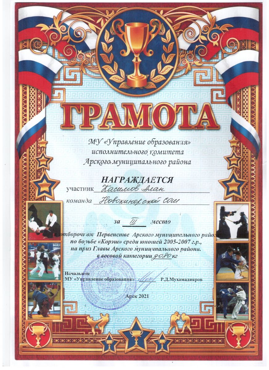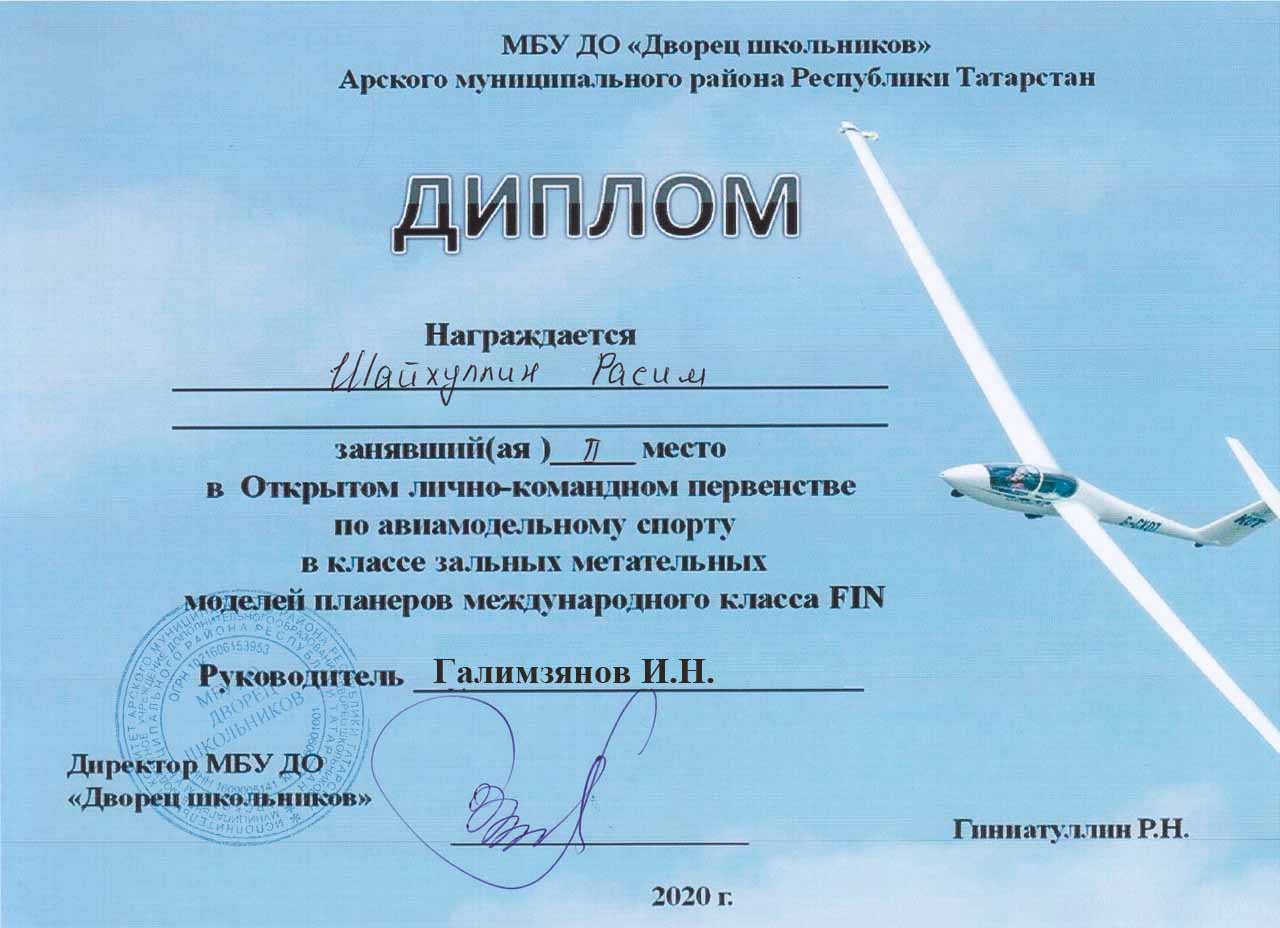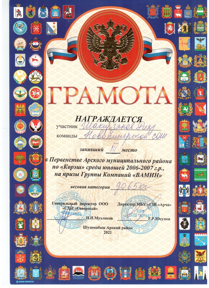 Диплом лауреата районного молодежного конкурса-фестиваля эстрадного искусства "Арча Йолдызлары 2021"