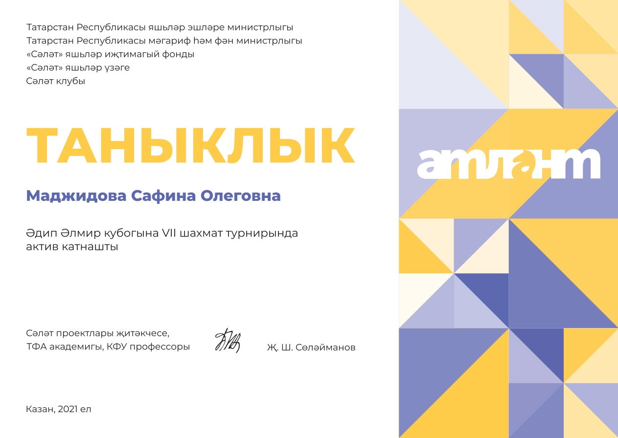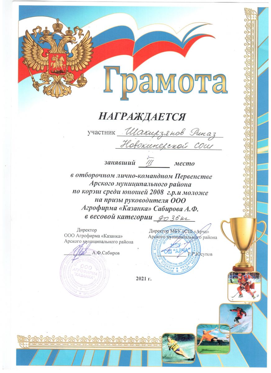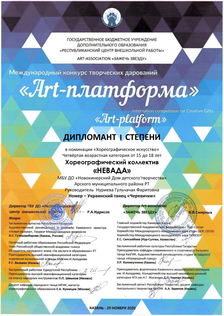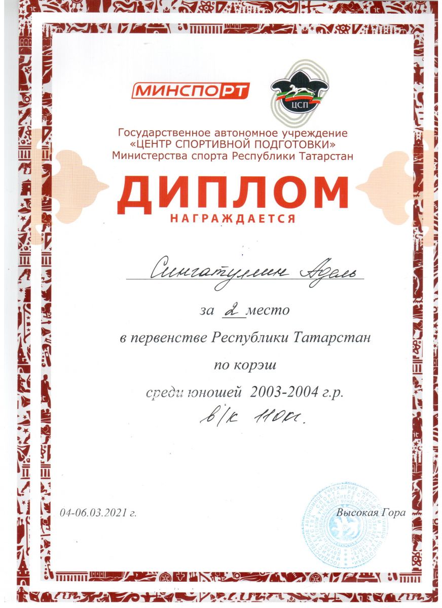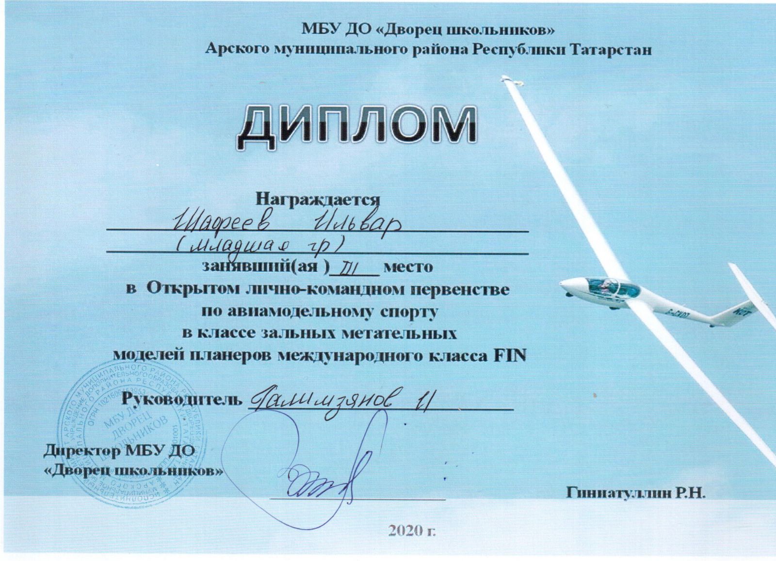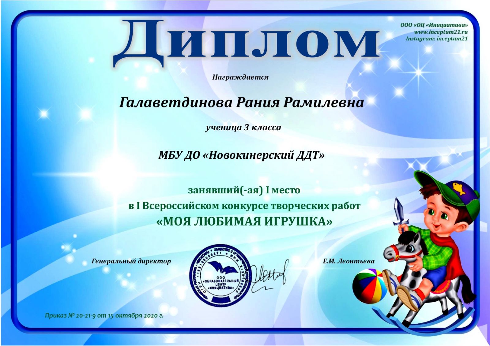 Диплом лауреата районного молодежного конкурса-фестиваля эстрадного искусства "Арча Йолдызлары 2021"