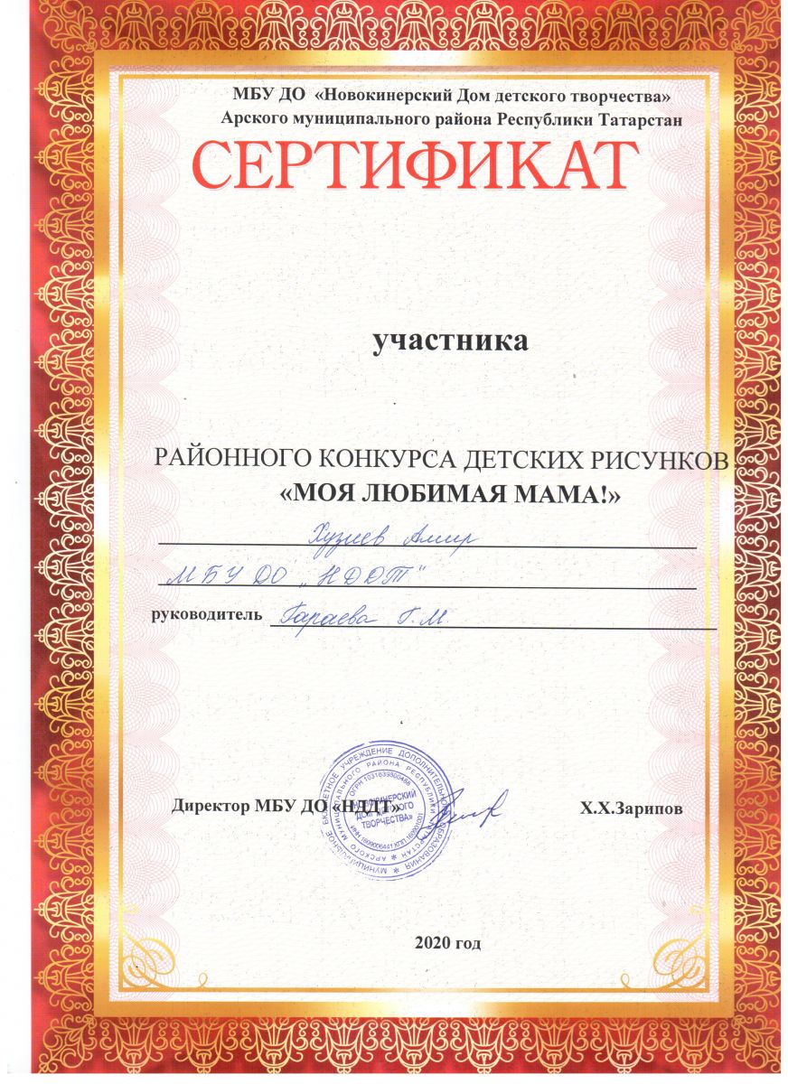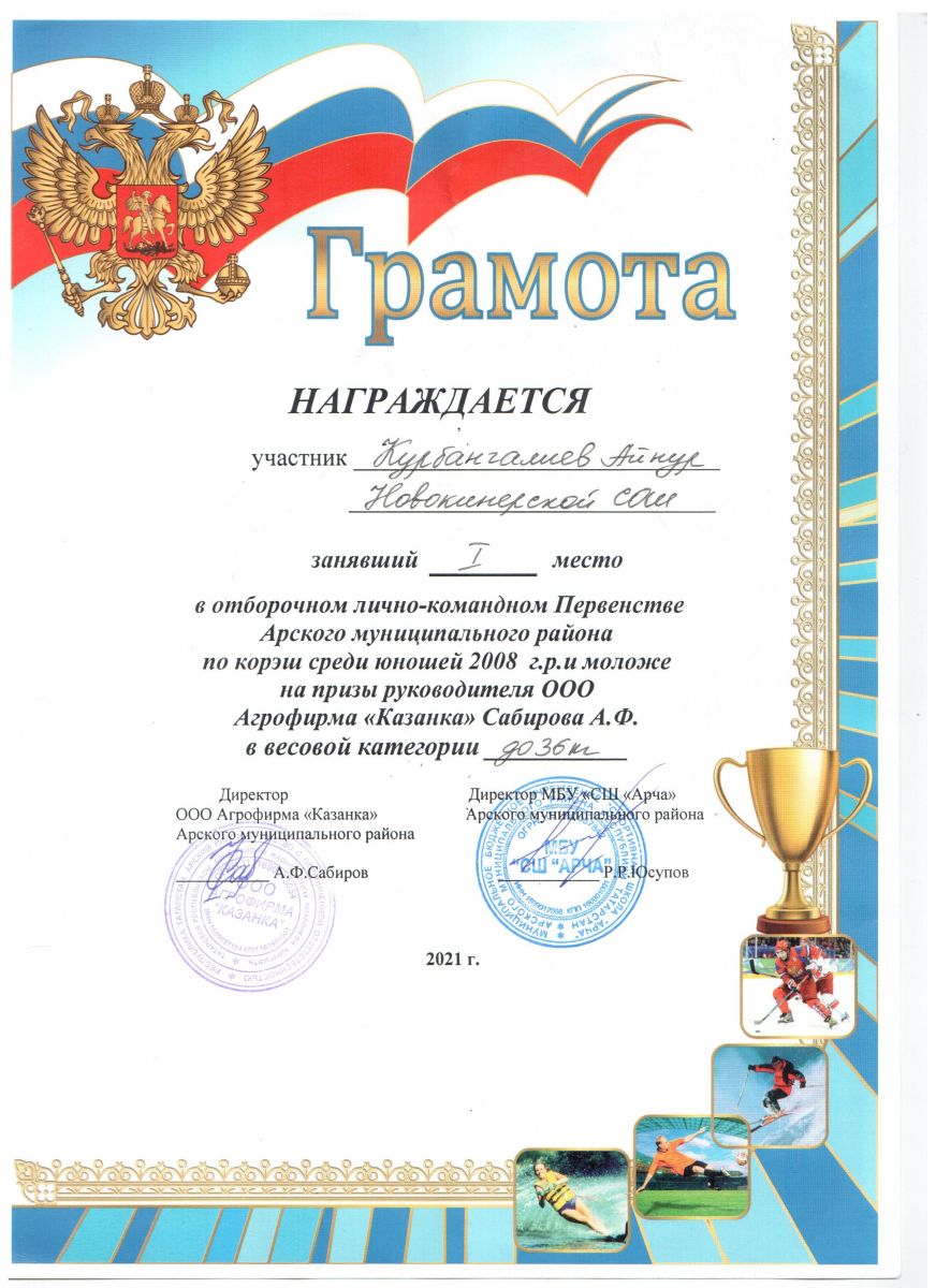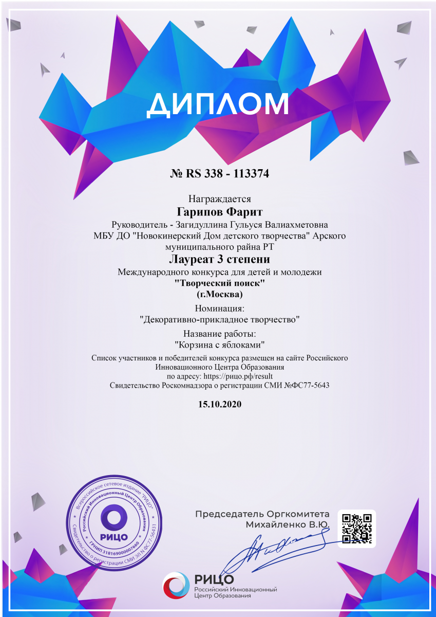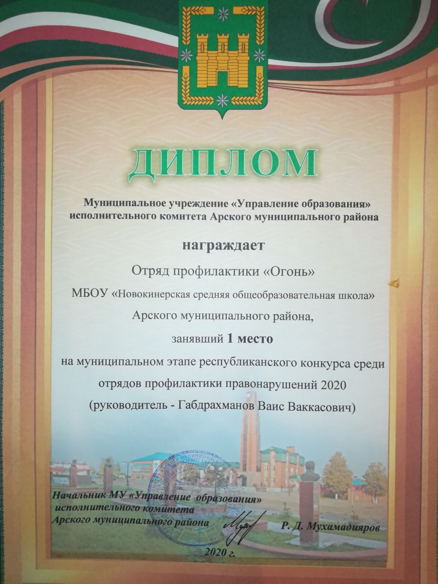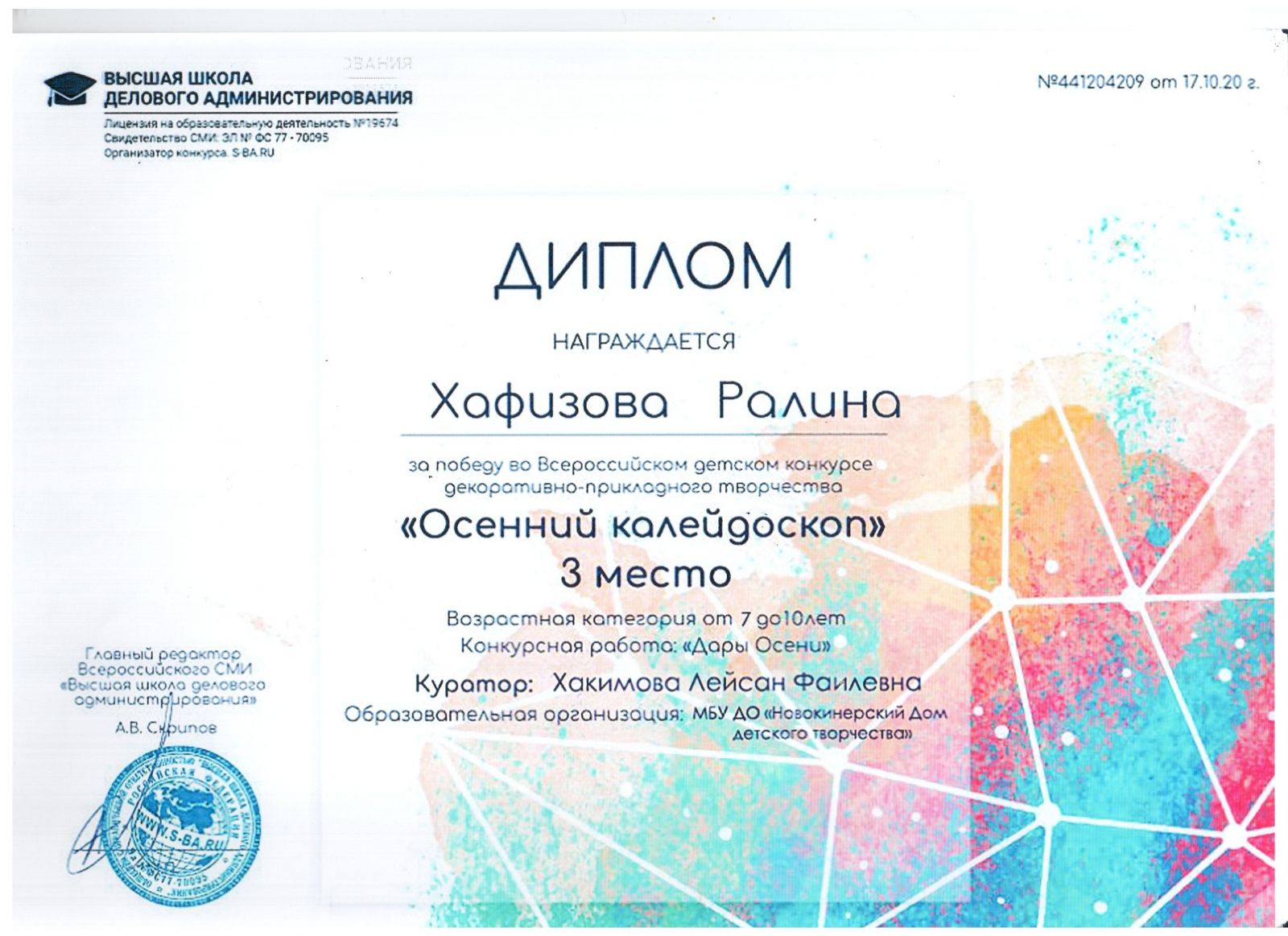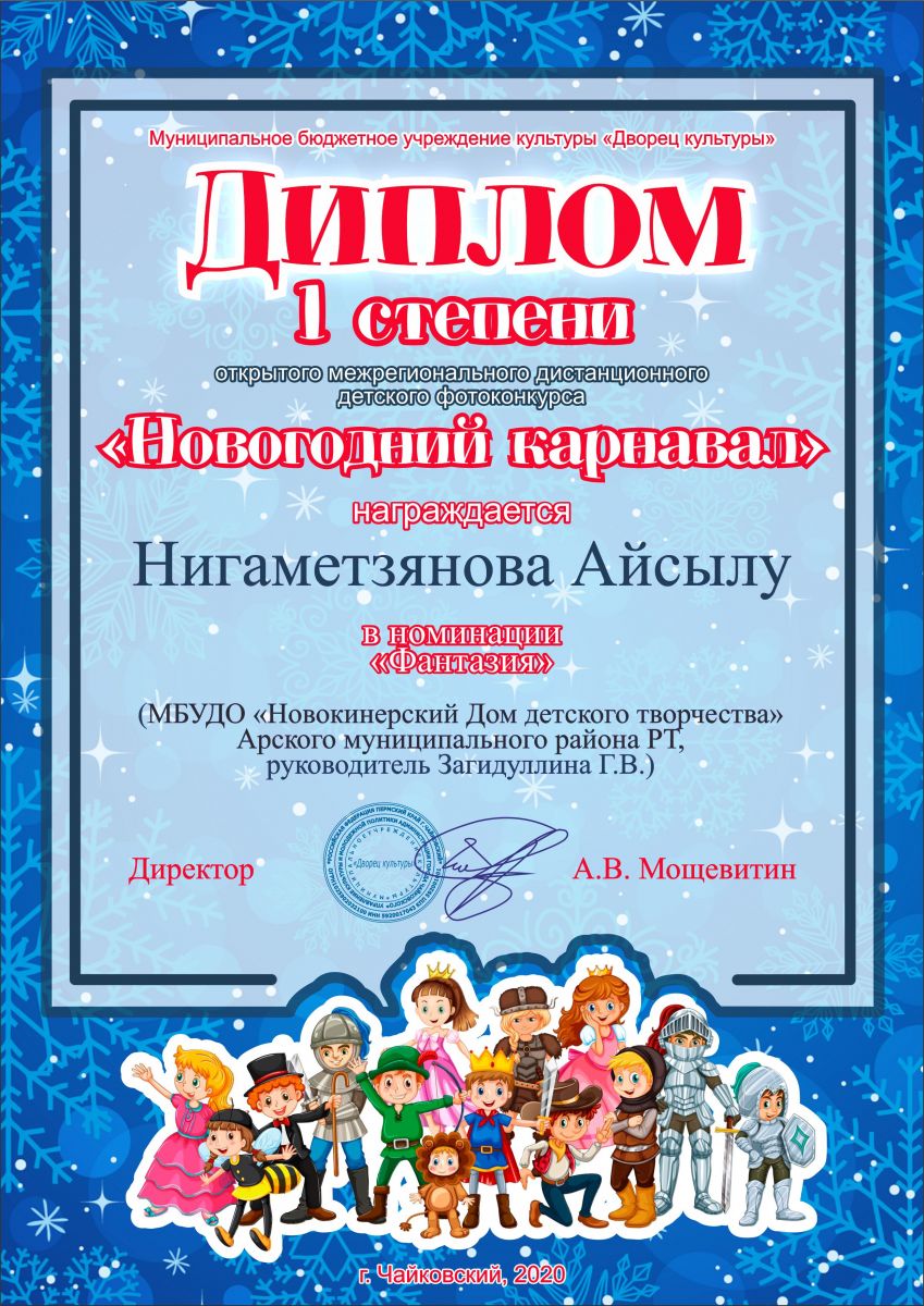 Диплом лауреата районного молодежного конкурса-фестиваля эстрадного искусства "Арча Йолдызлары 2021"