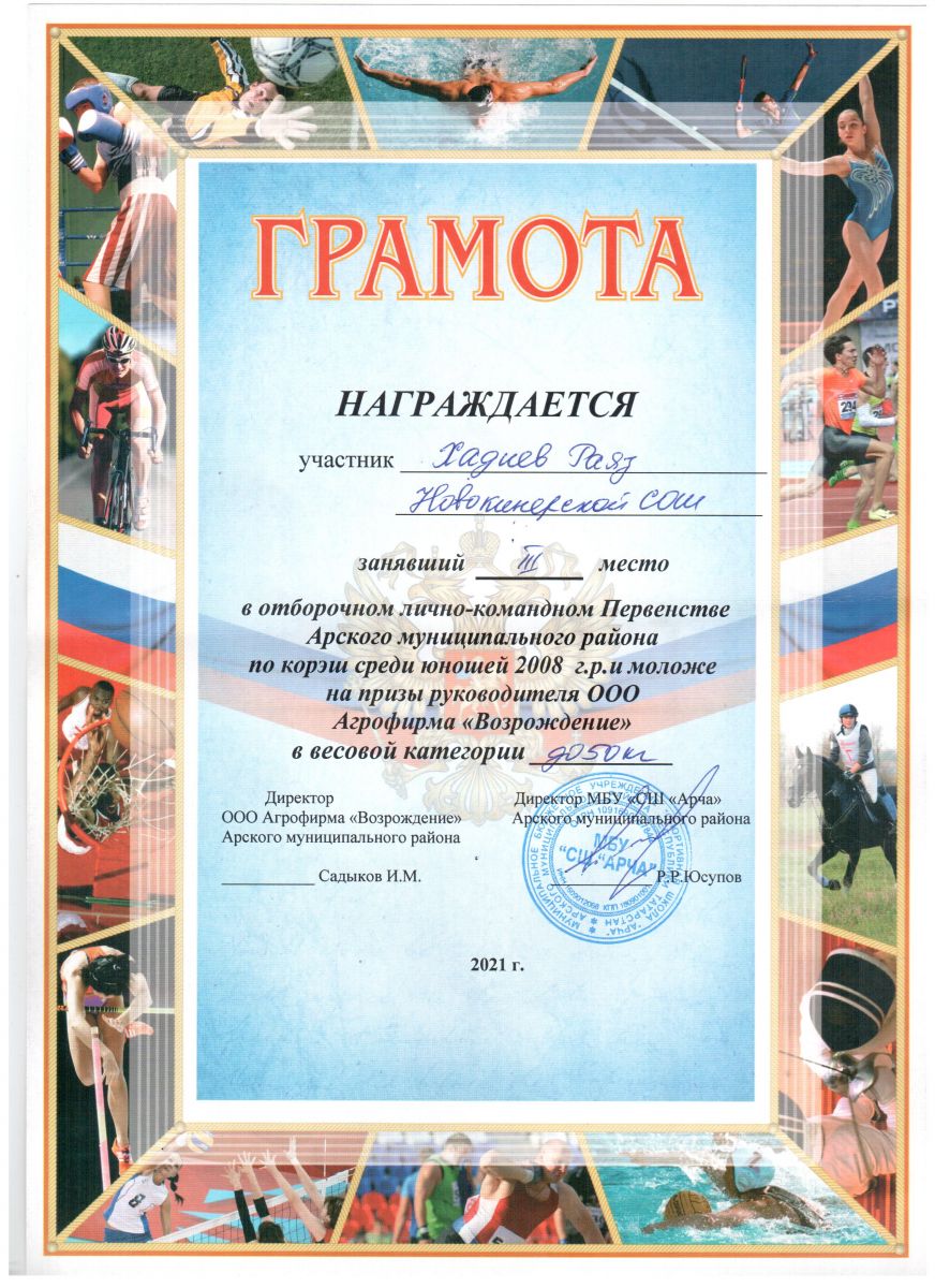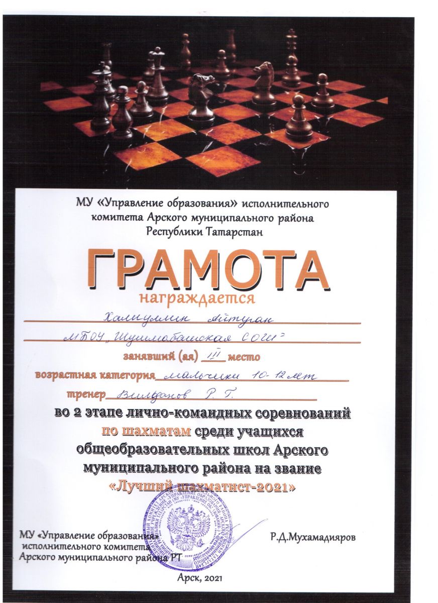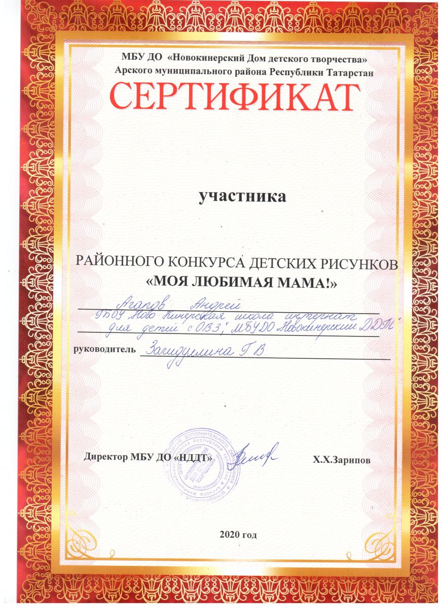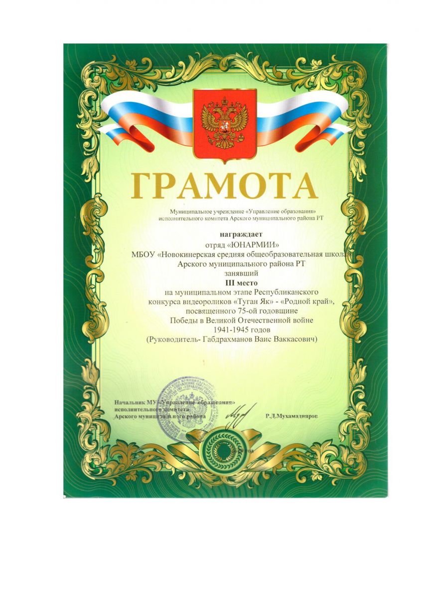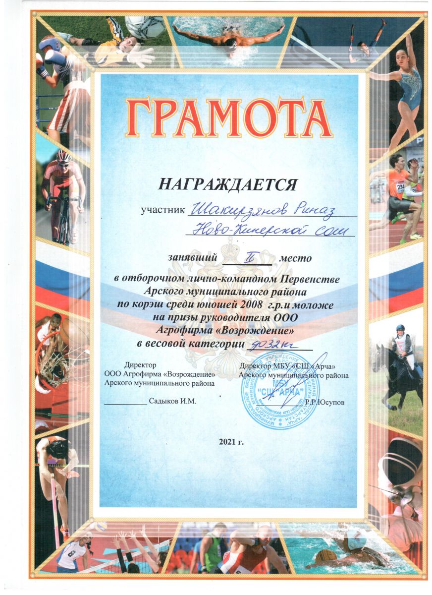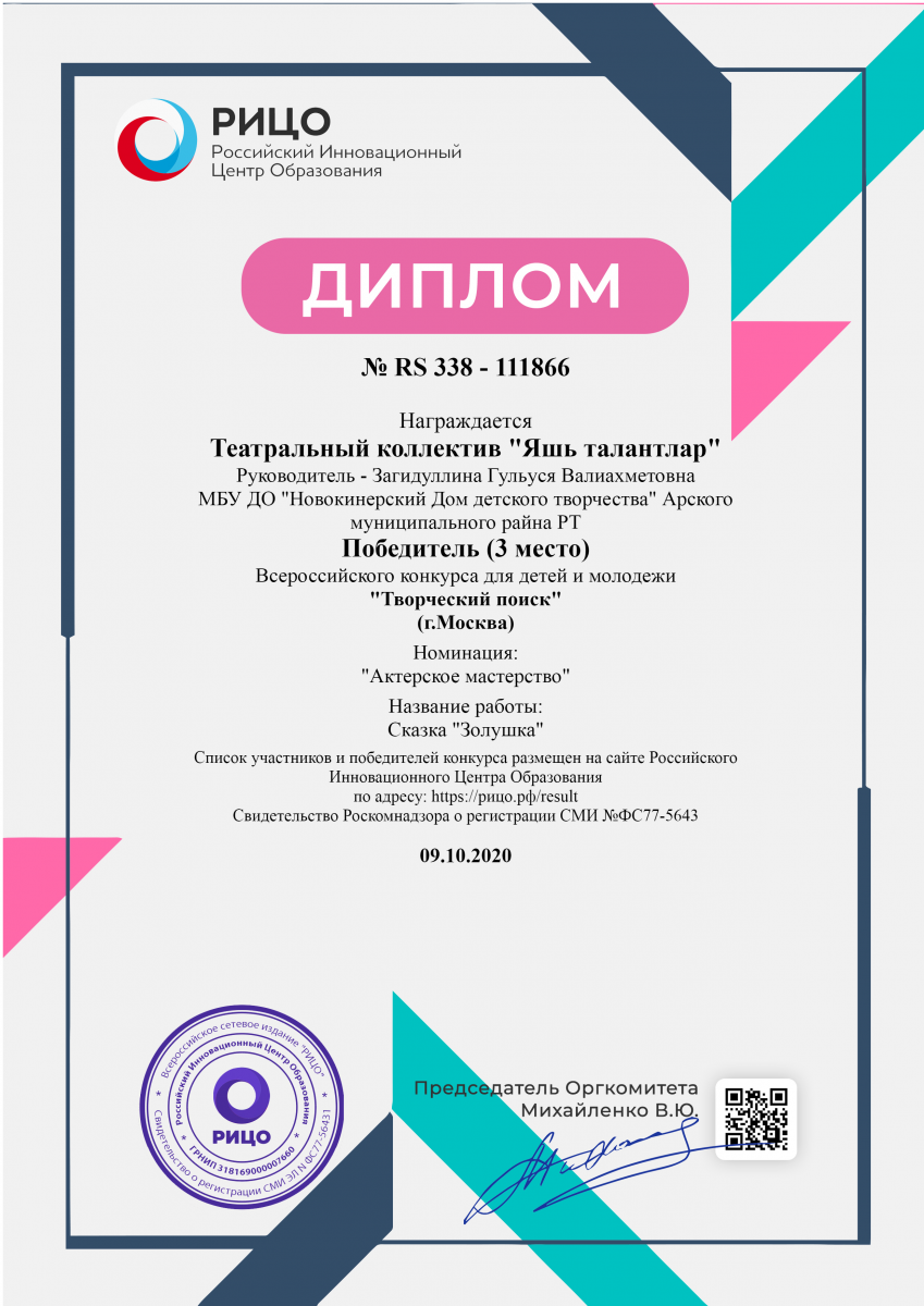 Диплом лауреата районного молодежного конкурса-фестиваля эстрадного искусства "Арча Йолдызлары 2021"