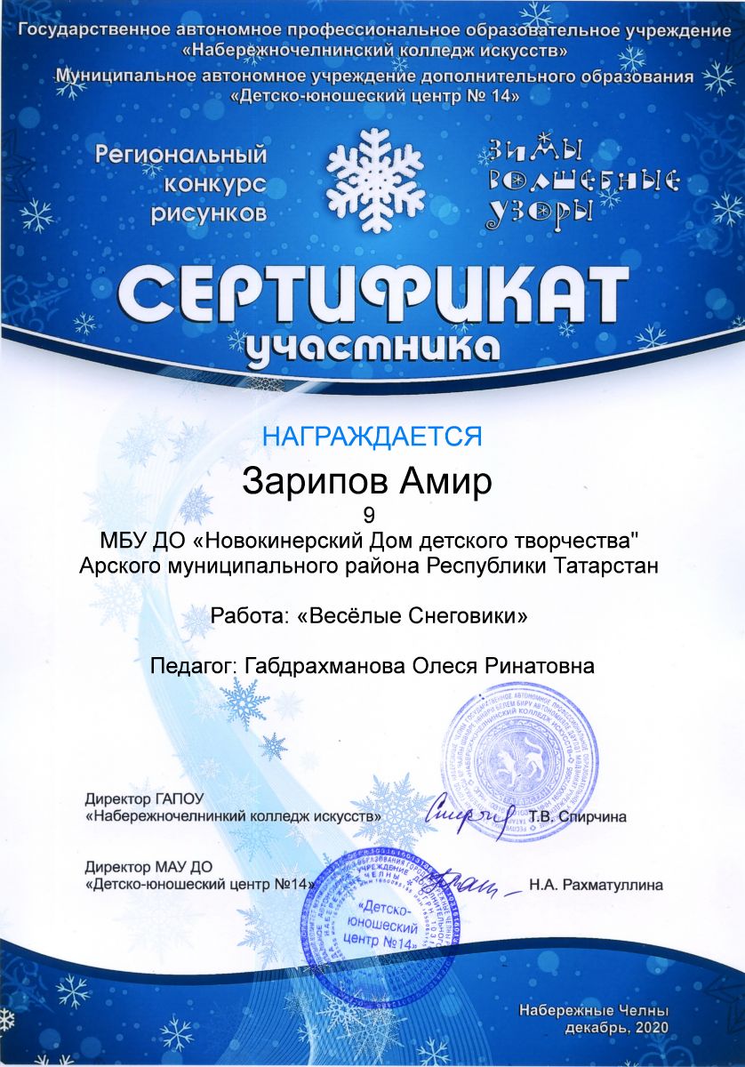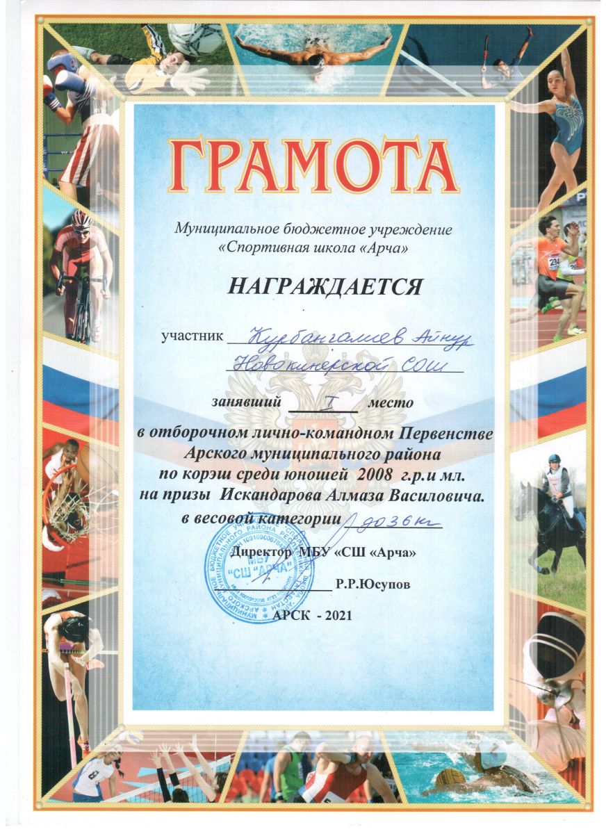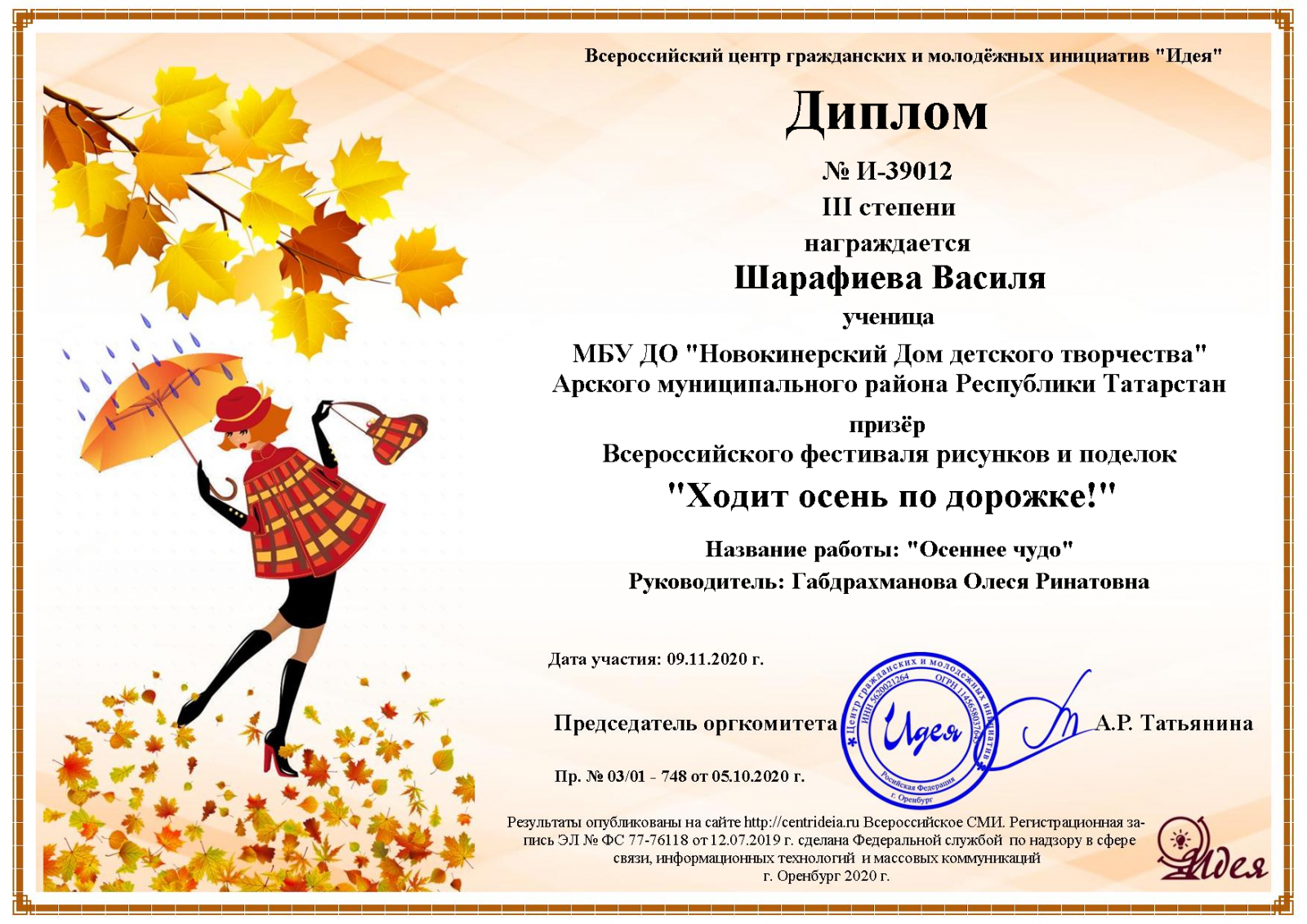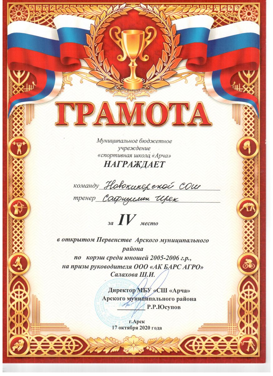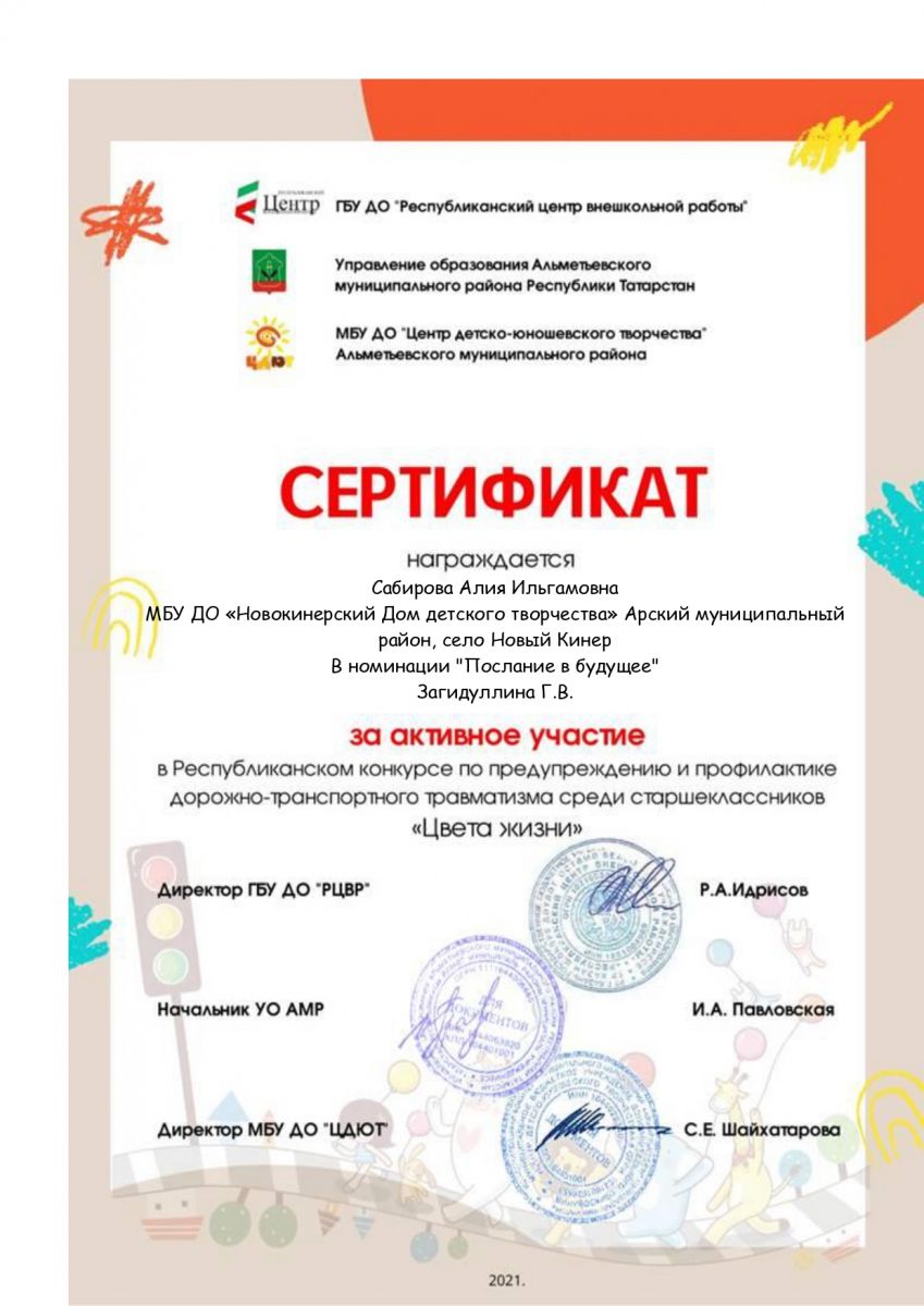 Диплом лауреата районного молодежного конкурса-фестиваля эстрадного искусства "Арча Йолдызлары 2021"