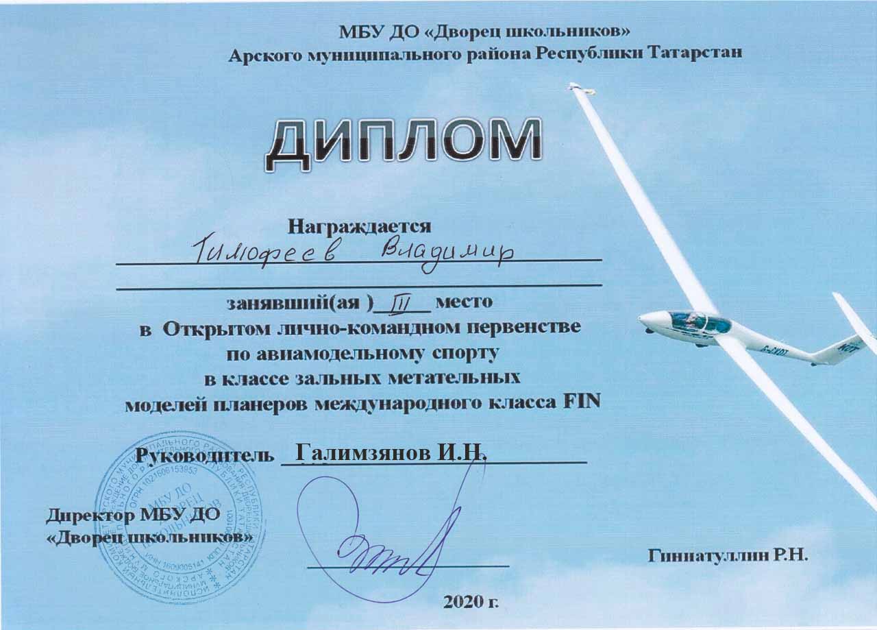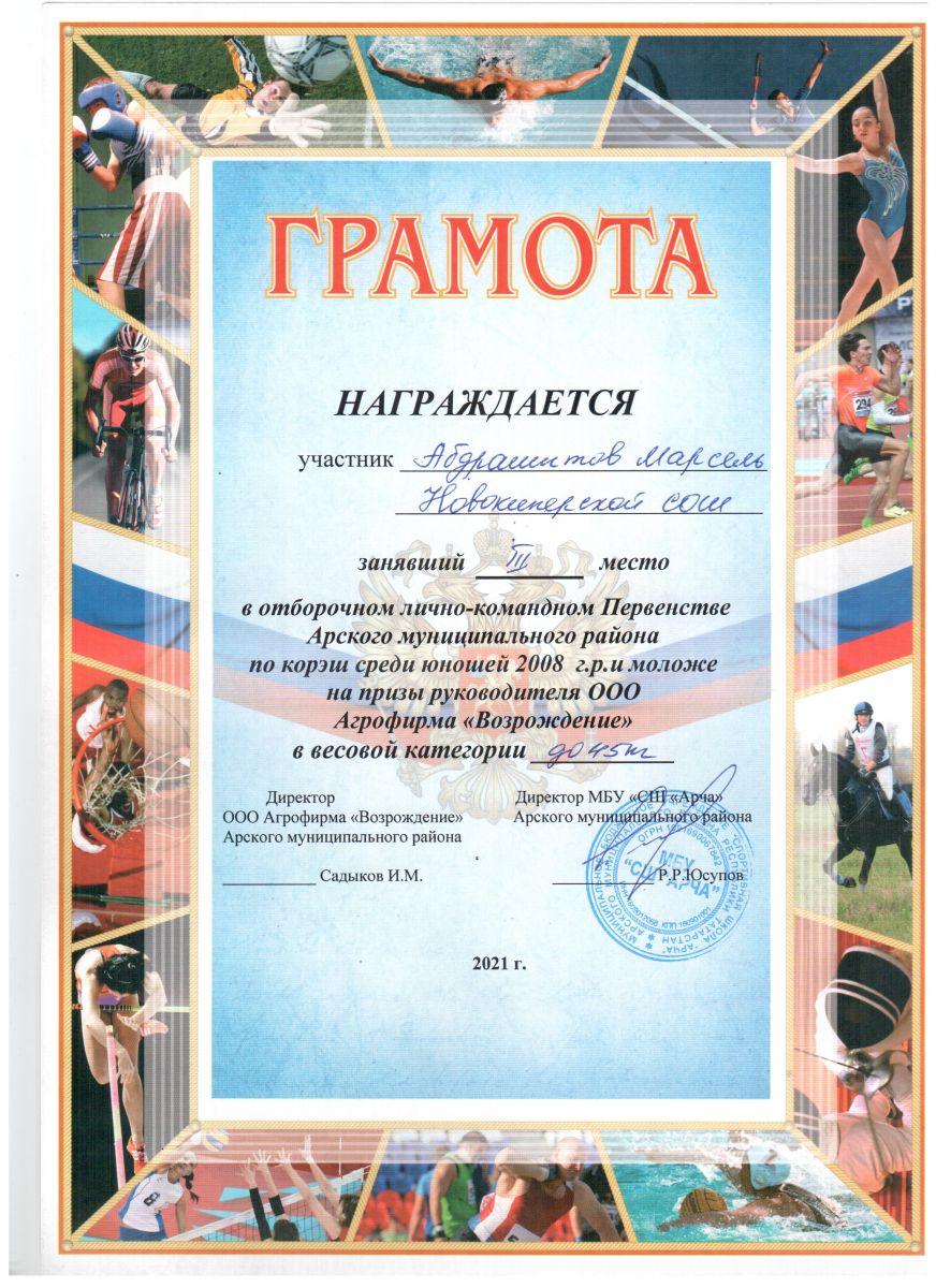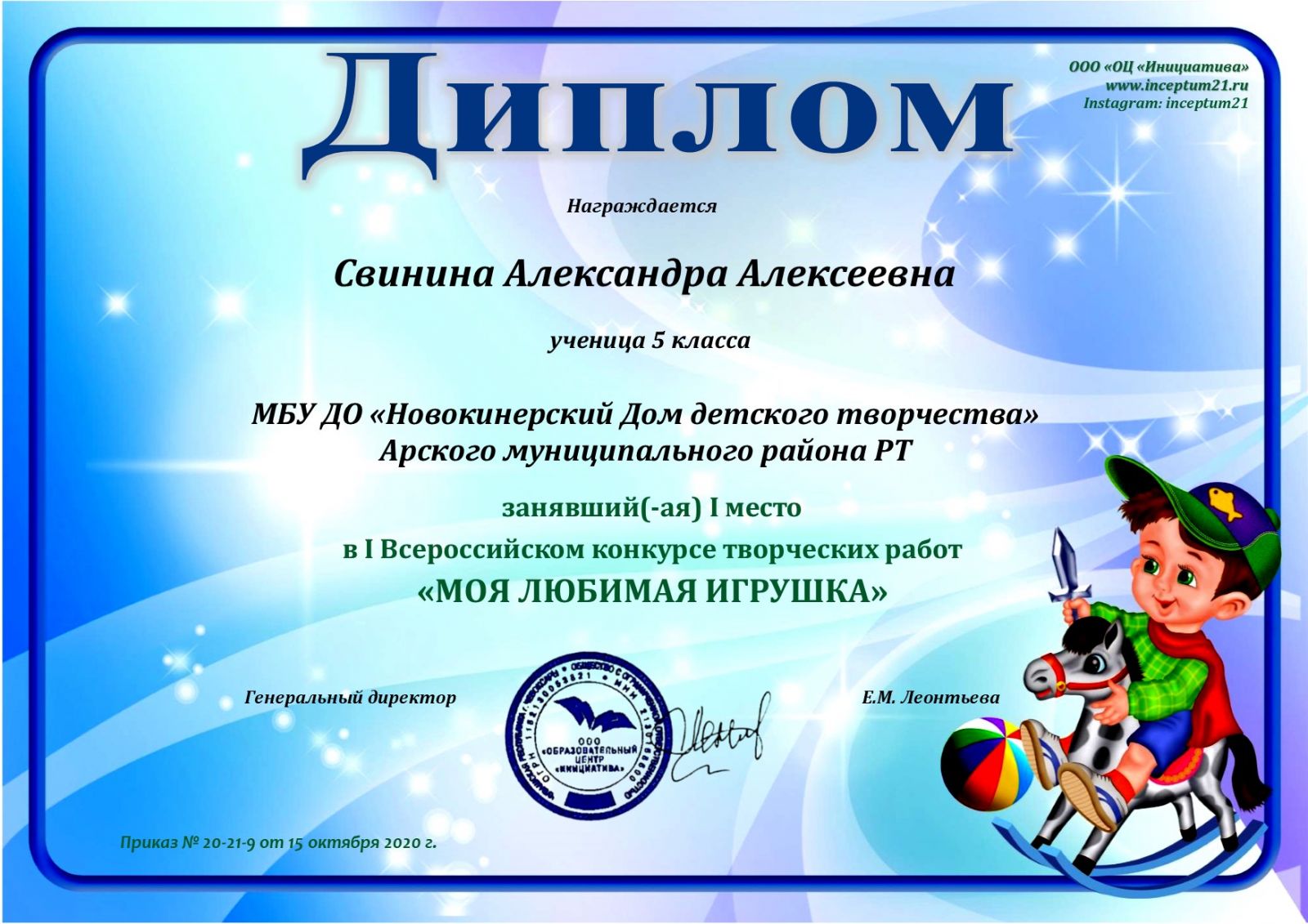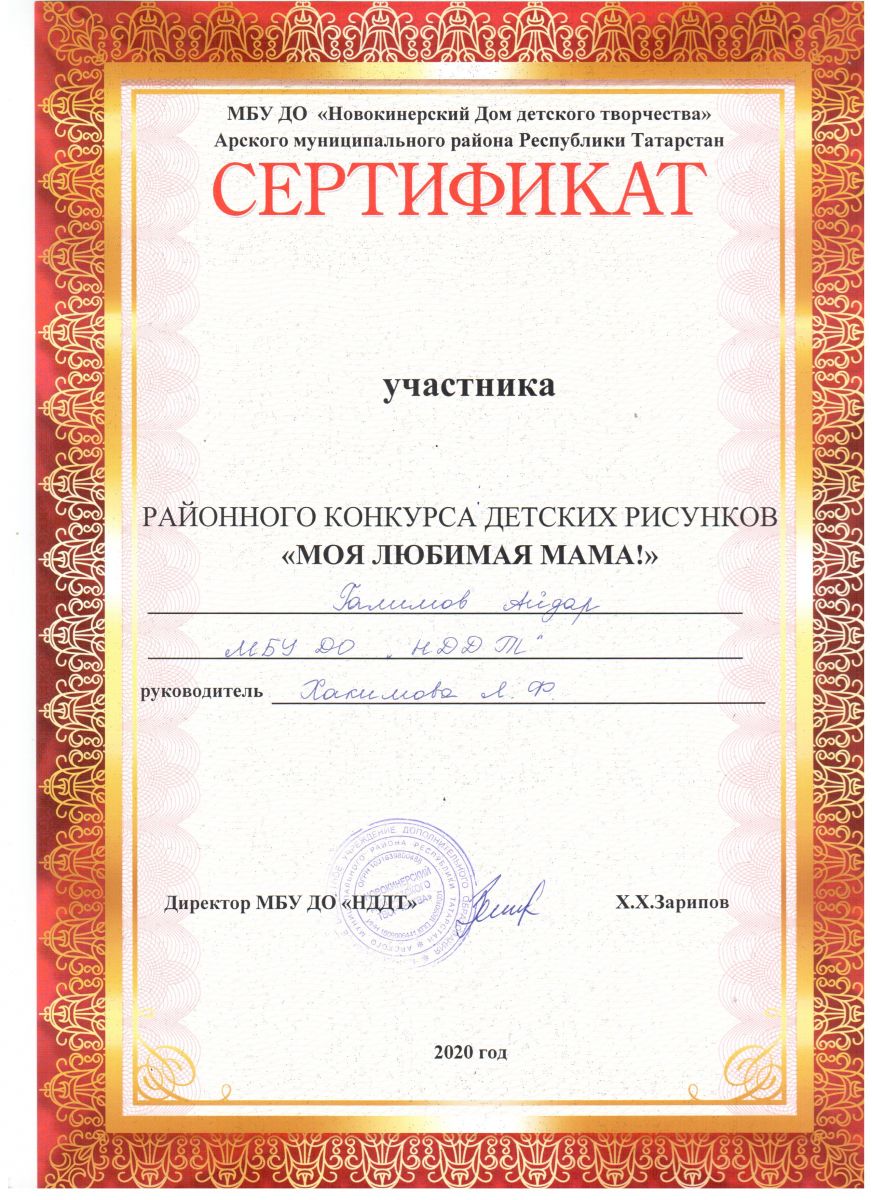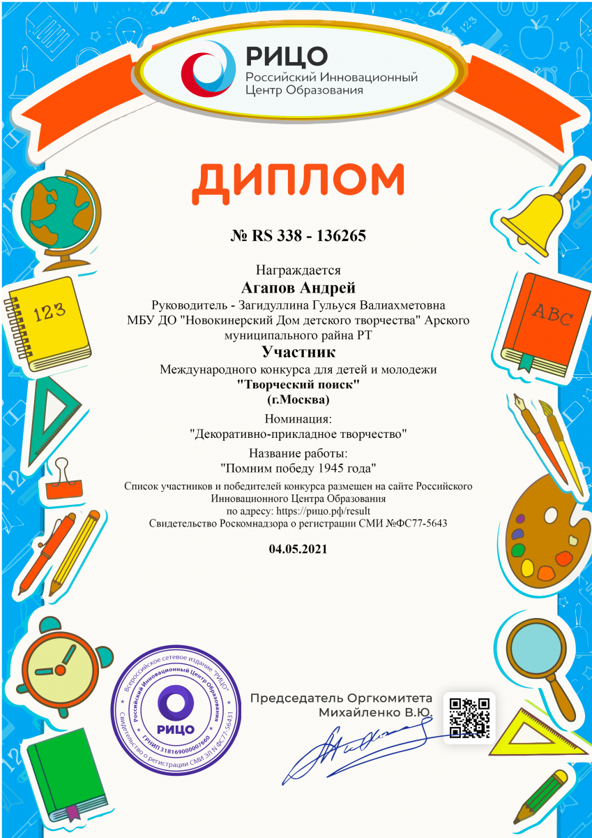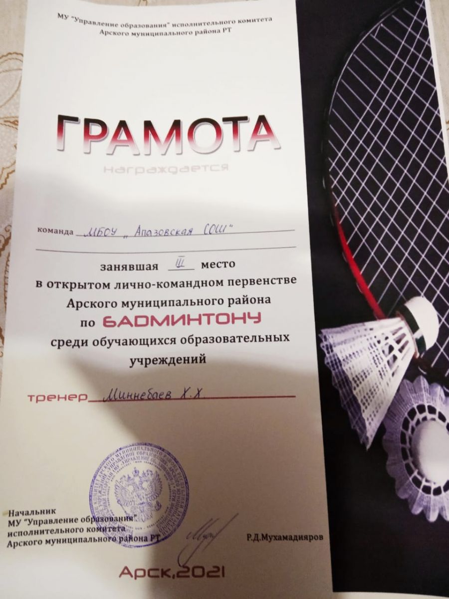Диплом лауреата районного молодежного конкурса-фестиваля эстрадного искусства "Арча Йолдызлары 2021"