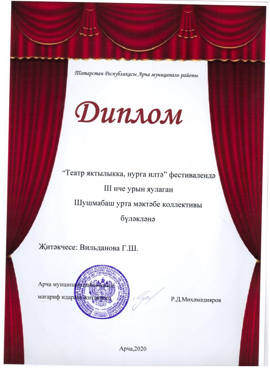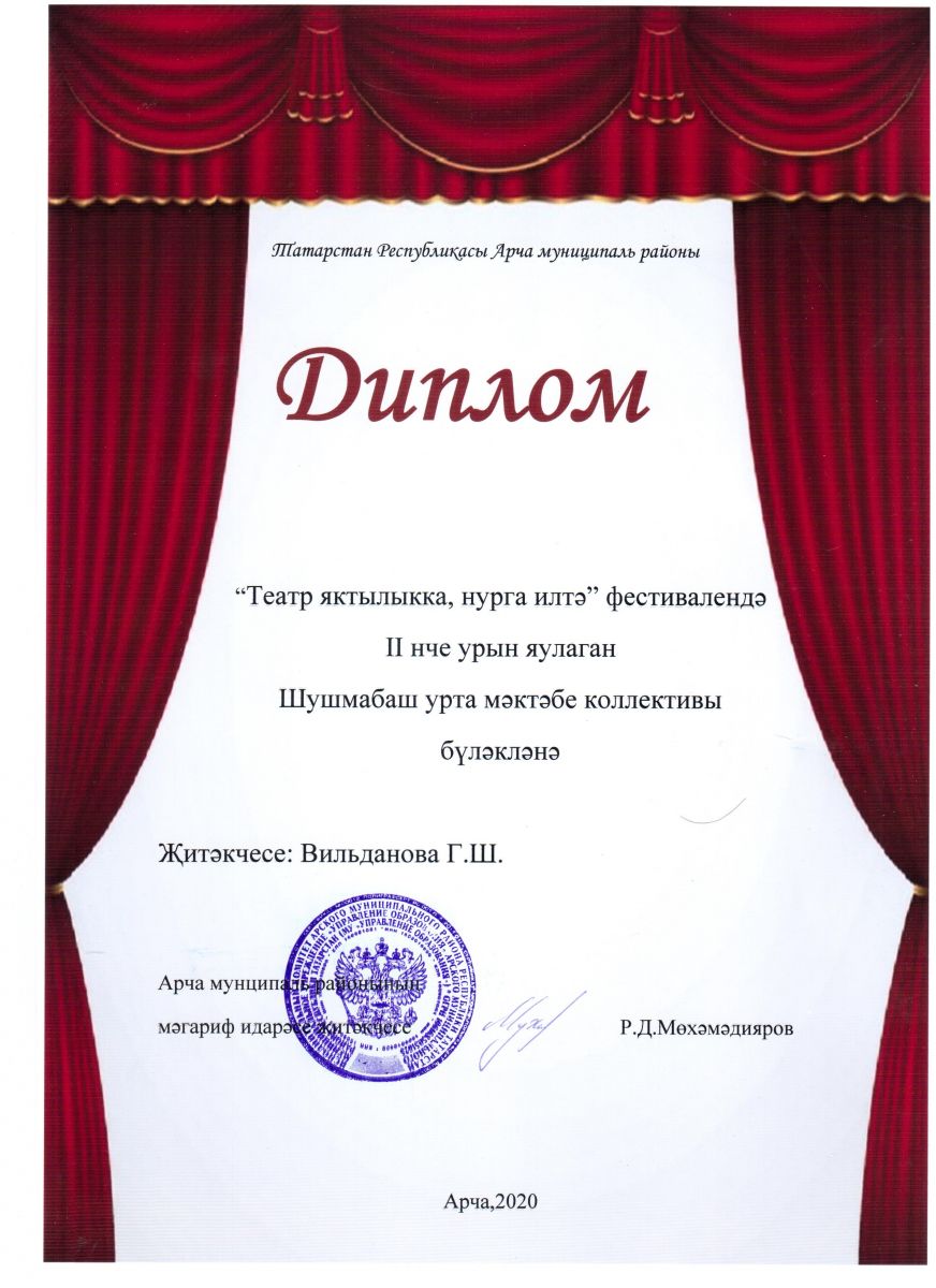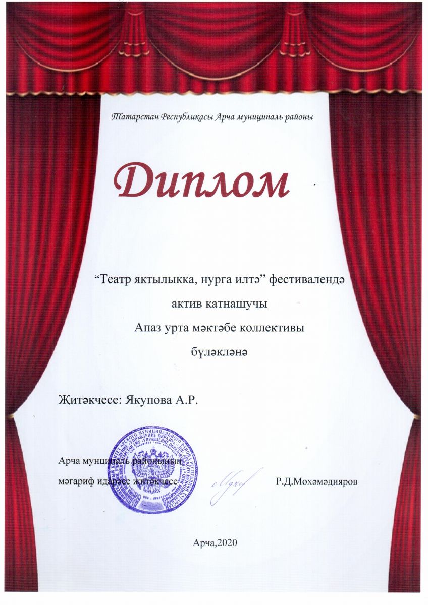 Диплом "Театр яктылыкка, нурга илтә" (участие)