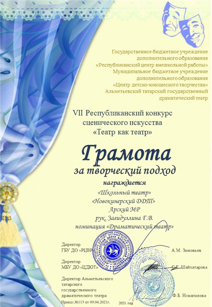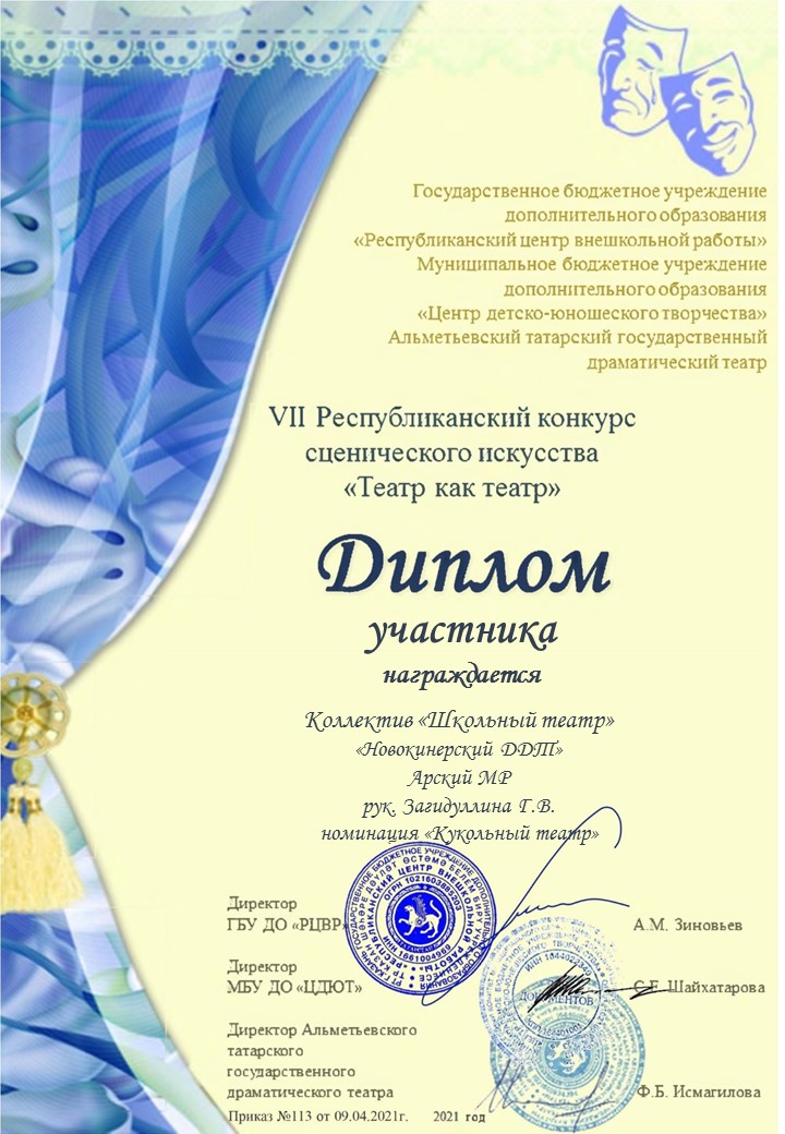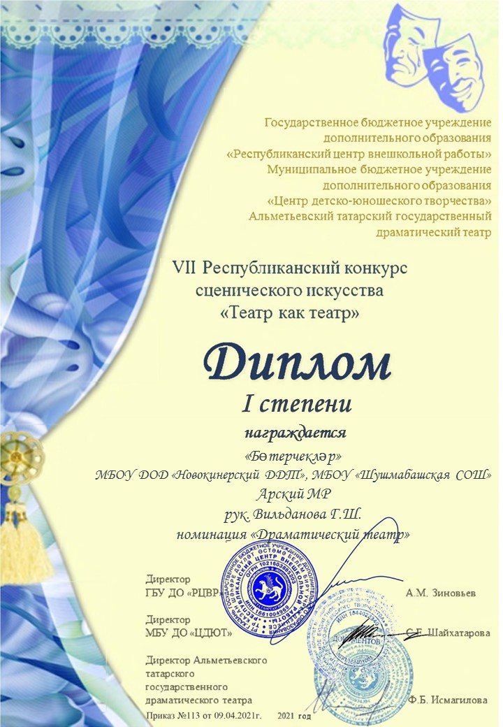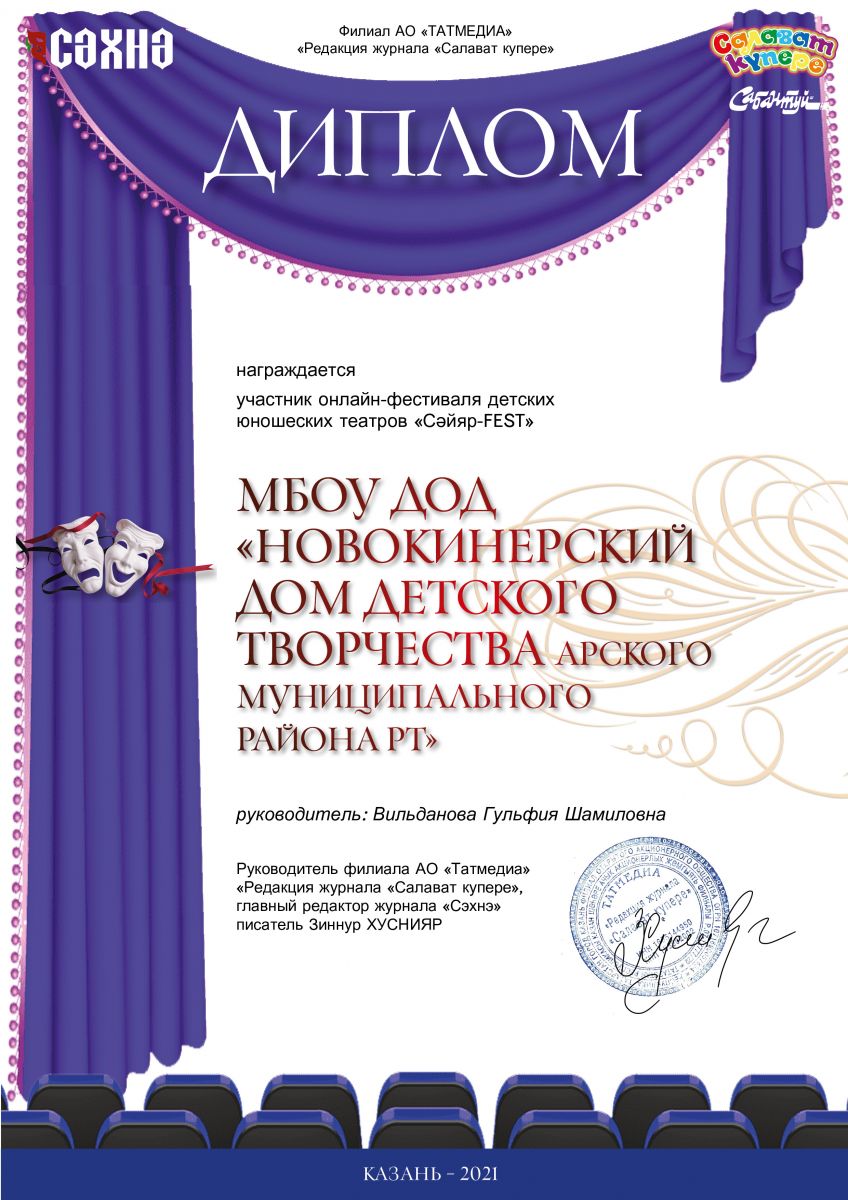 Диплом "Театр яктылыкка, нурга илтә" (участие)