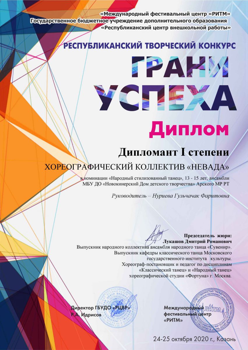Диплом дипломанта 1 степени - "Грани успеха"(коллектив)