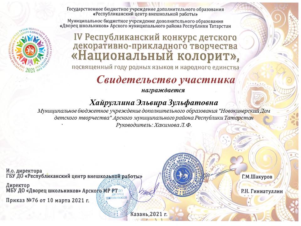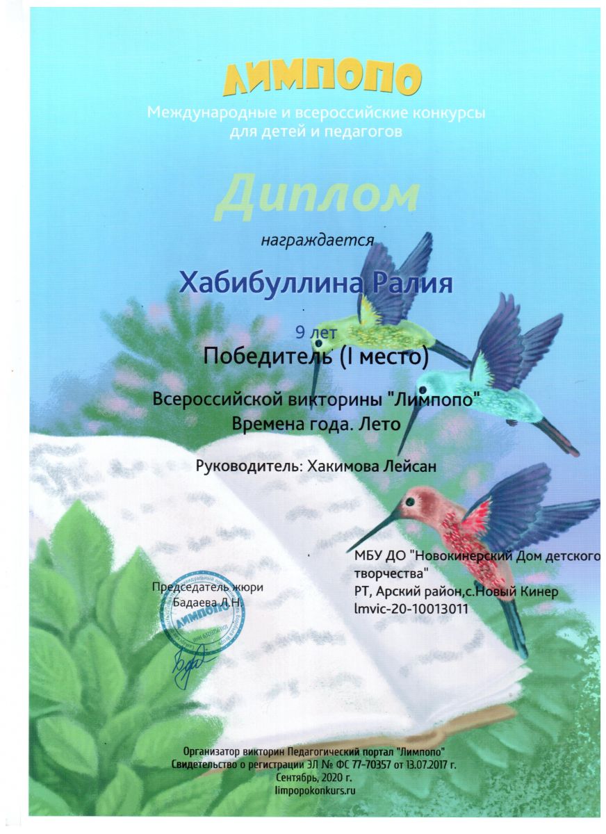 Муниципальное бюджетное учреждение дополнительного образования «Новокинерский Дом детского творчества" Арского муниципального района Республики Татарстан/Татарстан Республикасы Арча районы "Яна Кенәр балалар иҗаты Йорты" өстәмә белем муниципаль бюджет учреждениесе