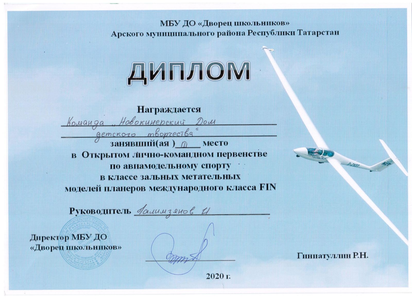 1 место - Соревнования по простейшим пневморакетомоделям (команда)