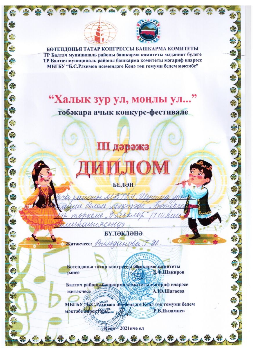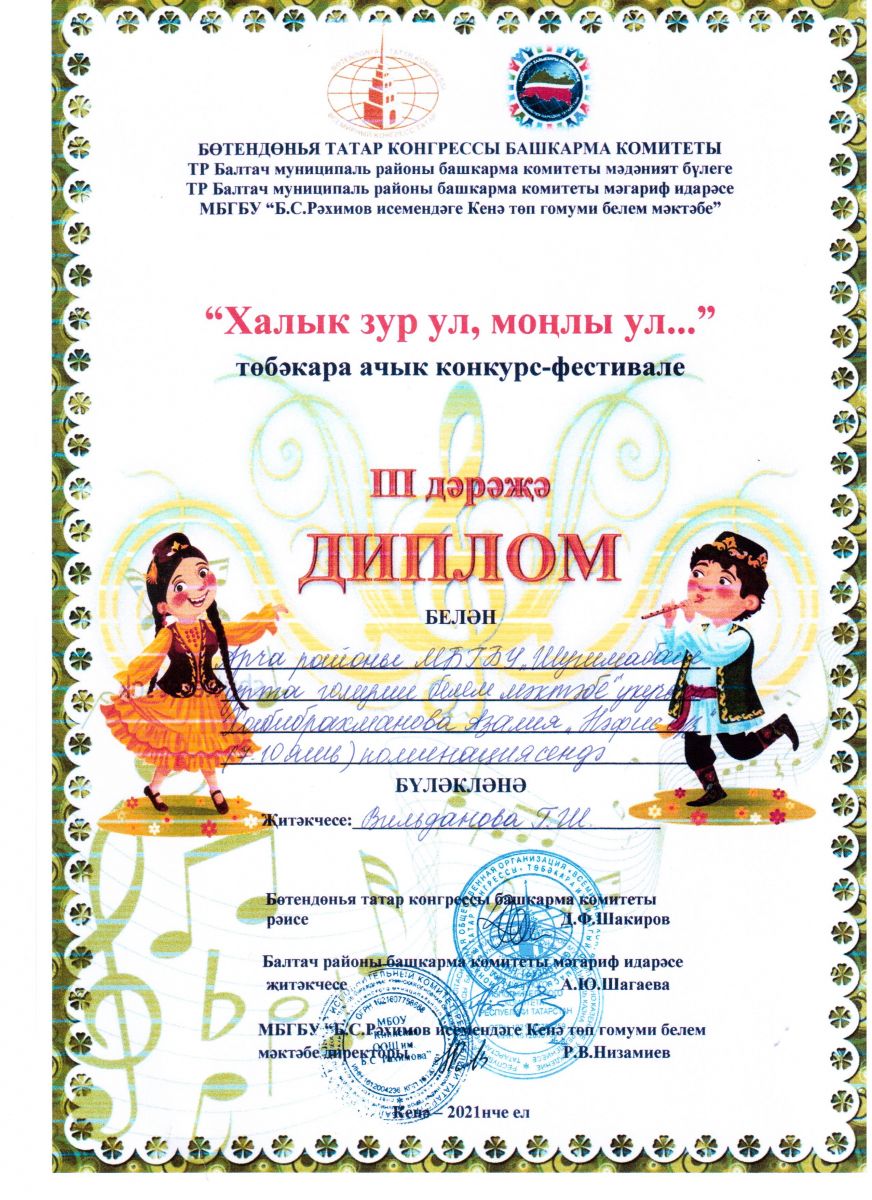 Диплом III степени - "Халык зур ул, моңлы ул..."