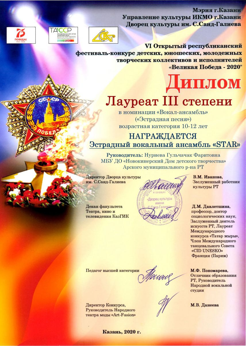 Диплом лауреата III степени - "Великая Победа - 2020" (коллектив)