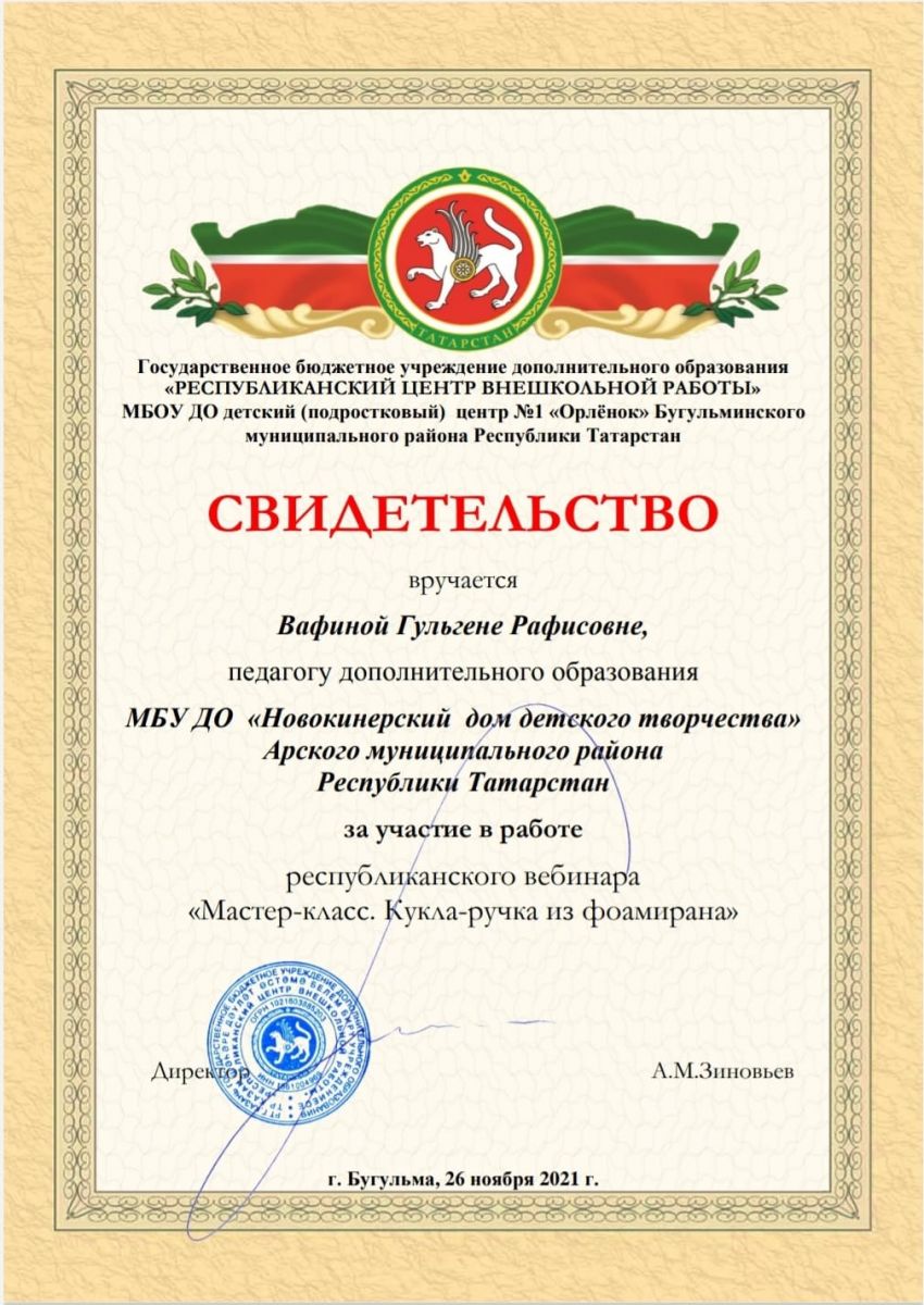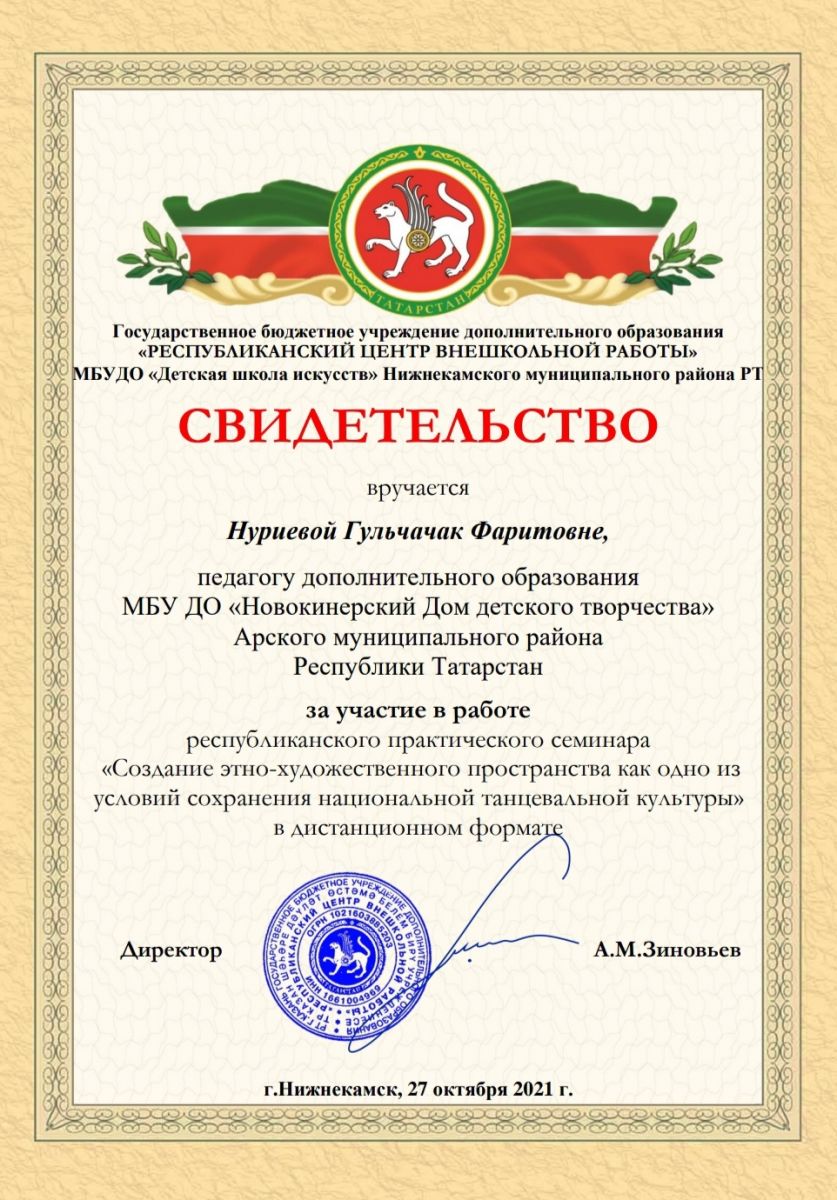 Муниципальное бюджетное учреждение дополнительного образования «Новокинерский Дом детского творчества" Арского муниципального района Республики Татарстан/Татарстан Республикасы Арча районы "Яна Кенәр балалар иҗаты Йорты" өстәмә белем муниципаль бюджет учреждениесе