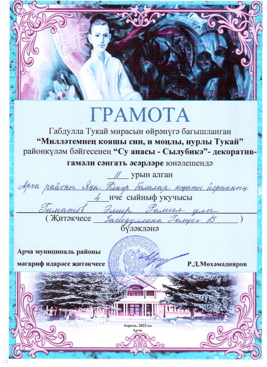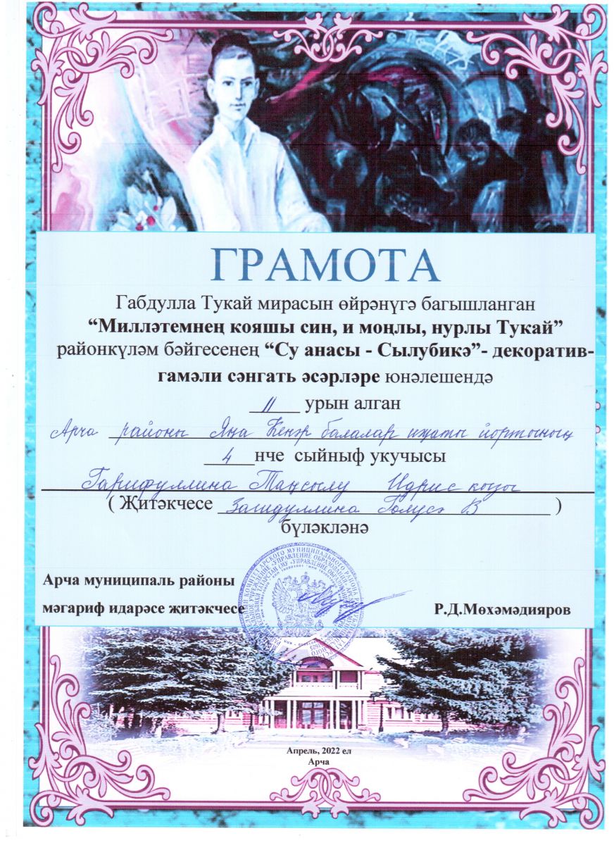 2 место - "Милләтемнең кояшы син, и моңлы, нурлы Тукай!"