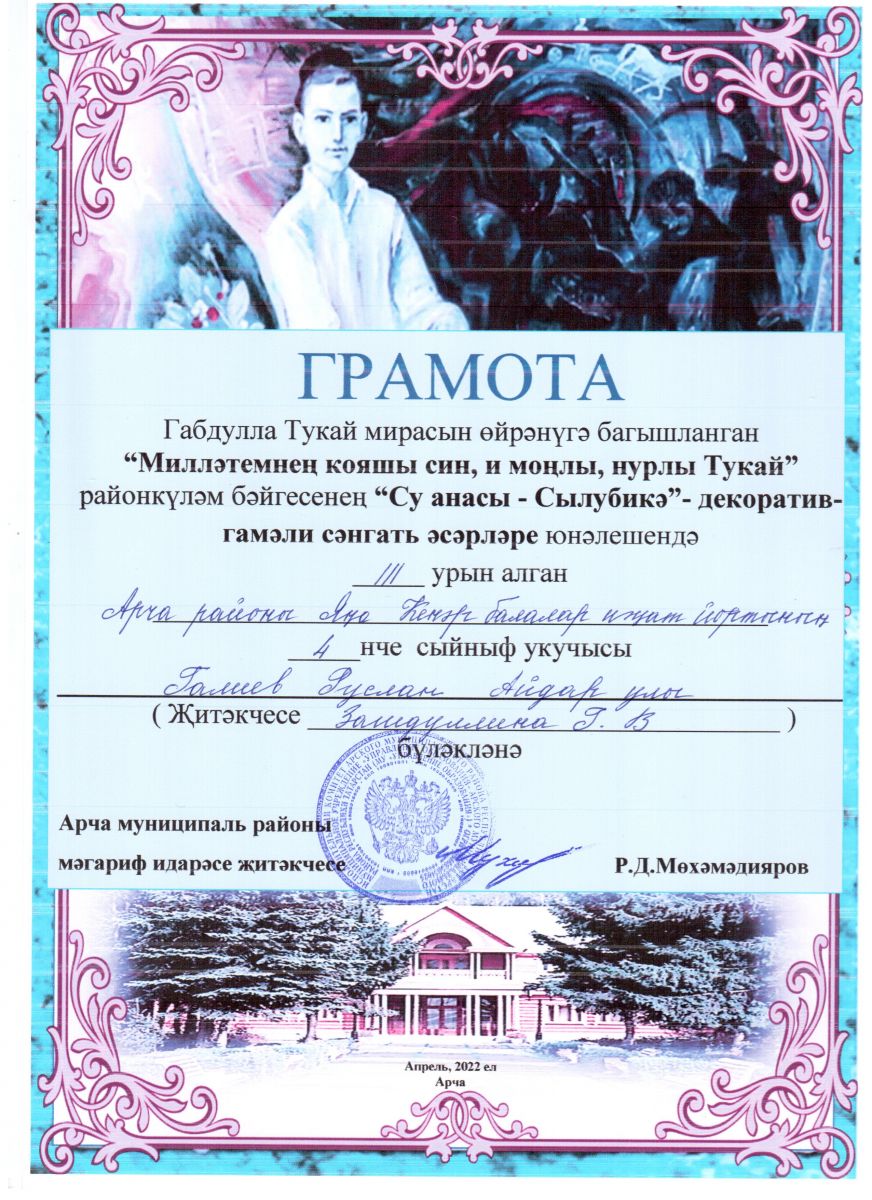 3 место - "Милләтемнең кояшы син, и моңлы, нурлы Тукай!"