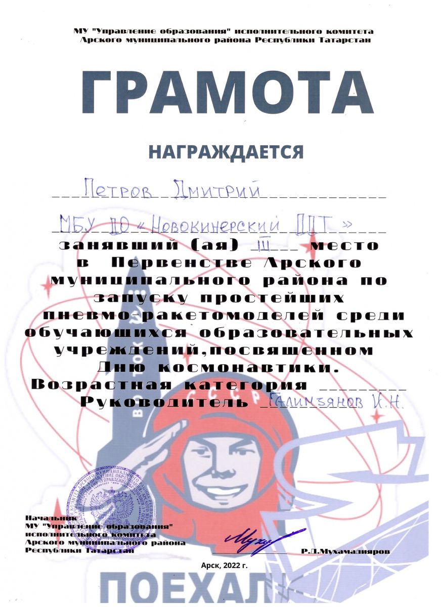 3 место в Первенстве по запуску простейших пневмо-ракетомоделей