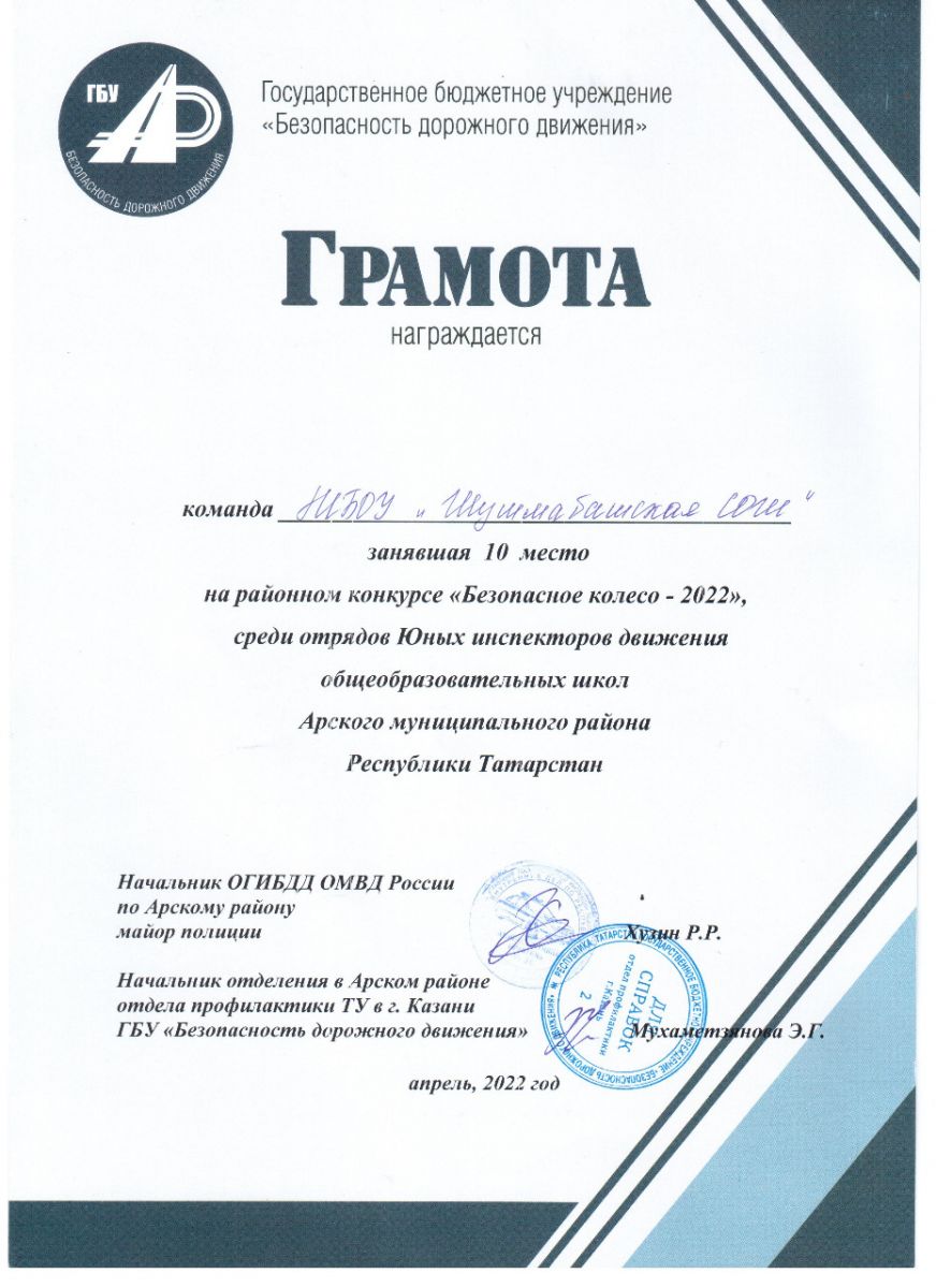 Диплом участника - "Безопасное колесо-2022" (команда)