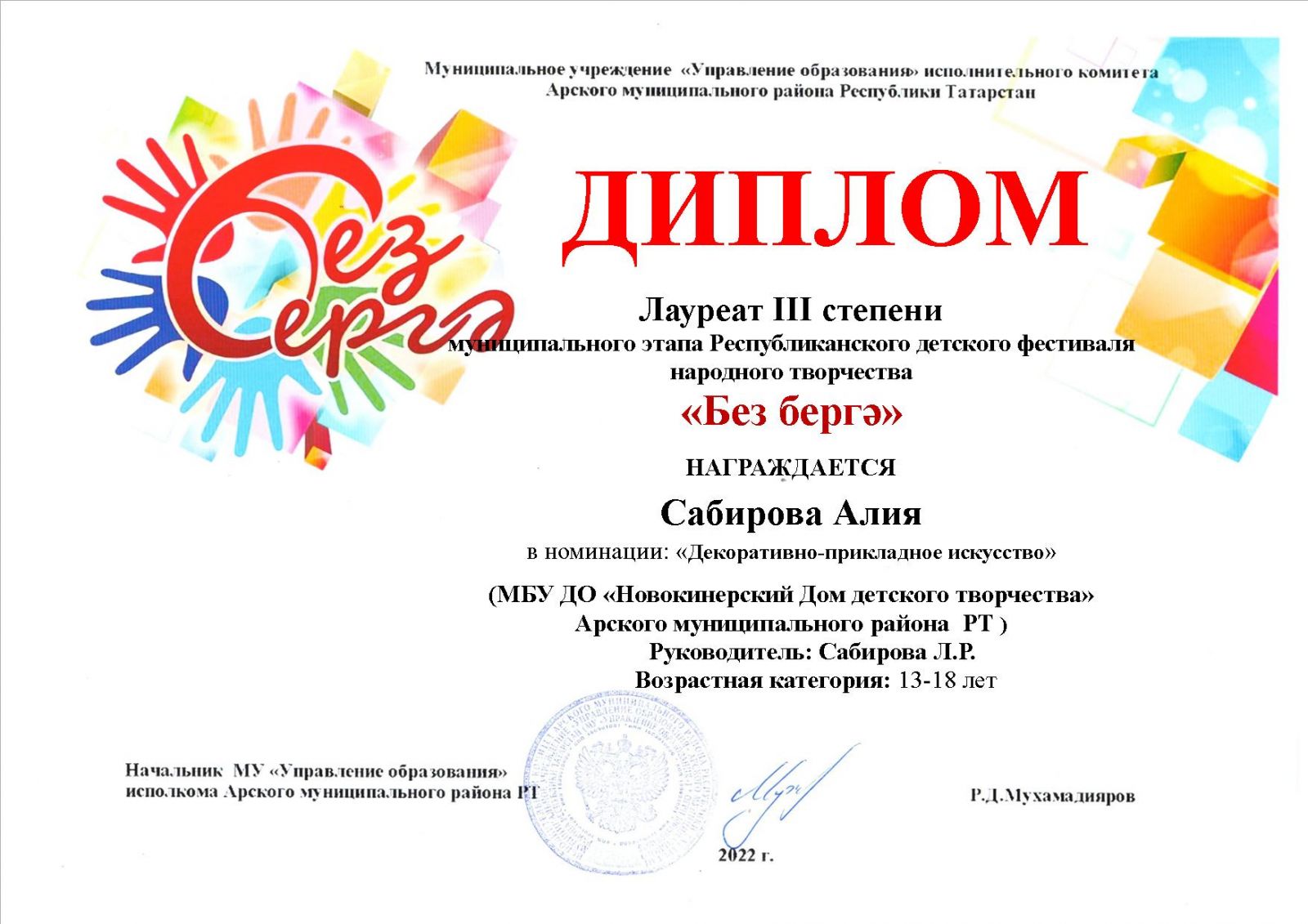 Муниципальное бюджетное учреждение дополнительного образования «Новокинерский Дом детского творчества" Арского муниципального района Республики Татарстан/Татарстан Республикасы Арча районы "Яна Кенәр балалар иҗаты Йорты" өстәмә белем муниципаль бюджет учреждениесе