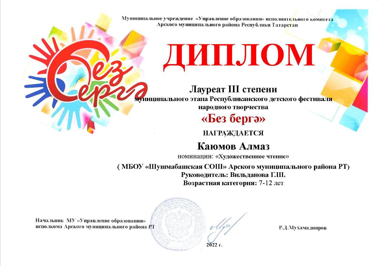 Диплом лауреата 2 степени - "Без бергә" (коллектив)
