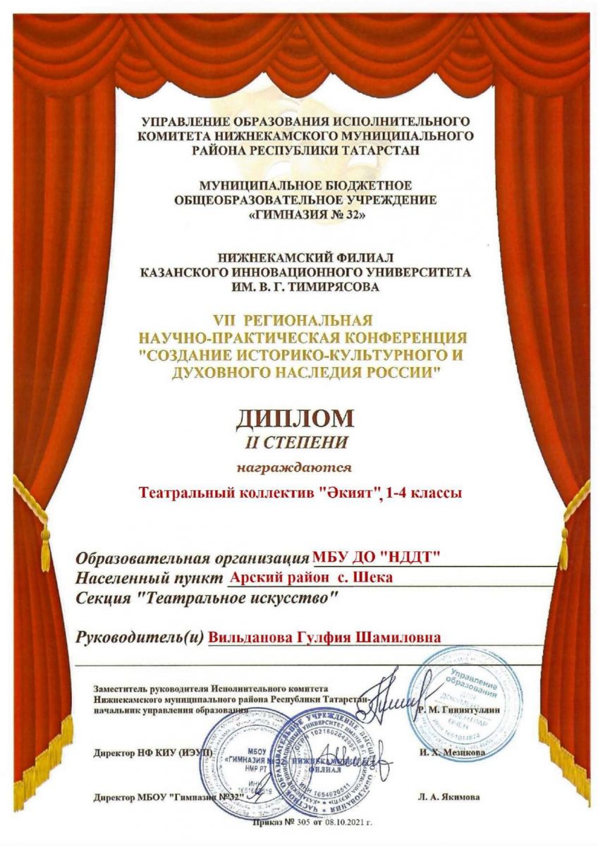 Диплом дипломанта 2 степени - "Камская волна 2021" (коллектив)