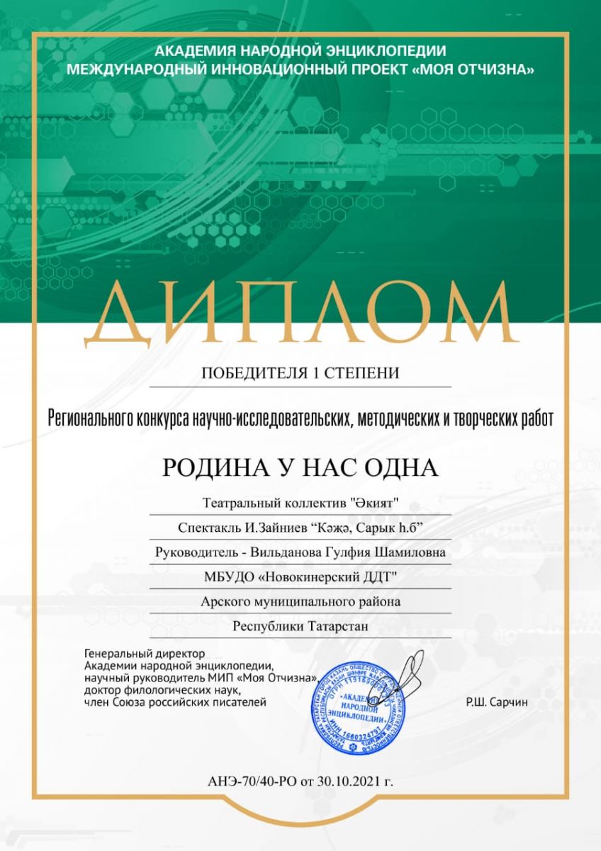 Муниципальное бюджетное учреждение дополнительного образования «Новокинерский Дом детского творчества" Арского муниципального района Республики Татарстан/Татарстан Республикасы Арча районы "Яна Кенәр балалар иҗаты Йорты" өстәмә белем муниципаль бюджет учреждениесе