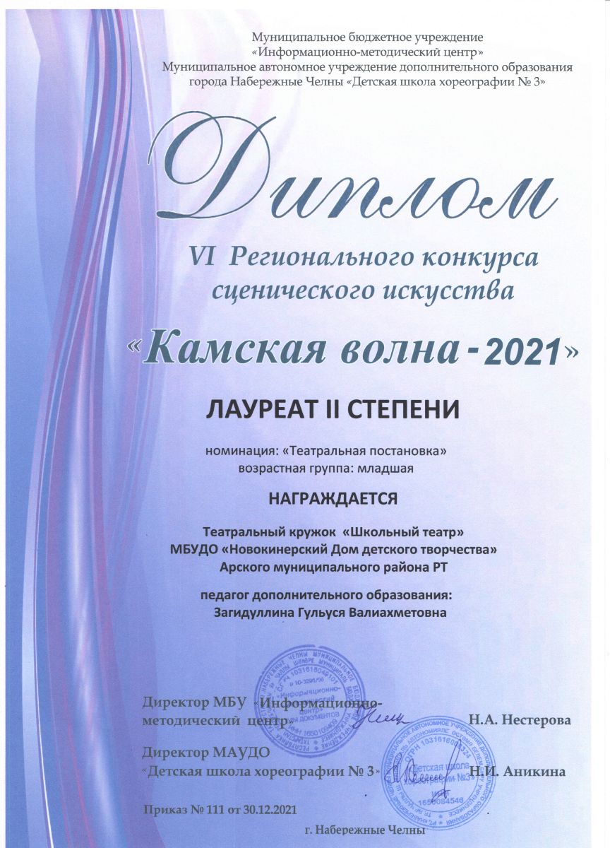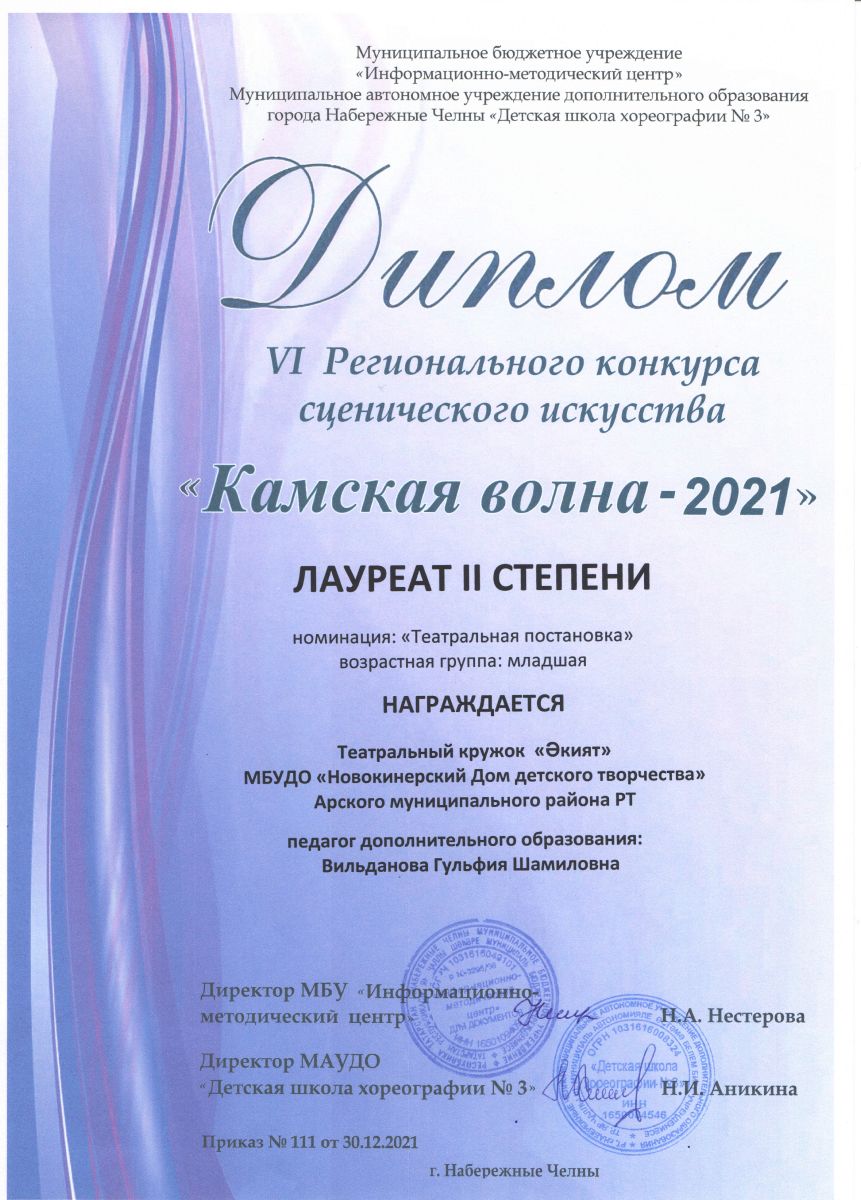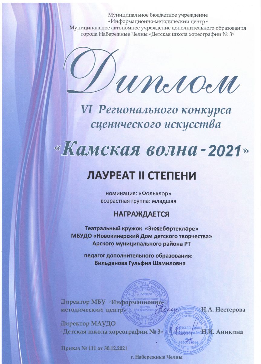 Диплом лауреата 2 степени - "Камская волна 2021" (коллектив)