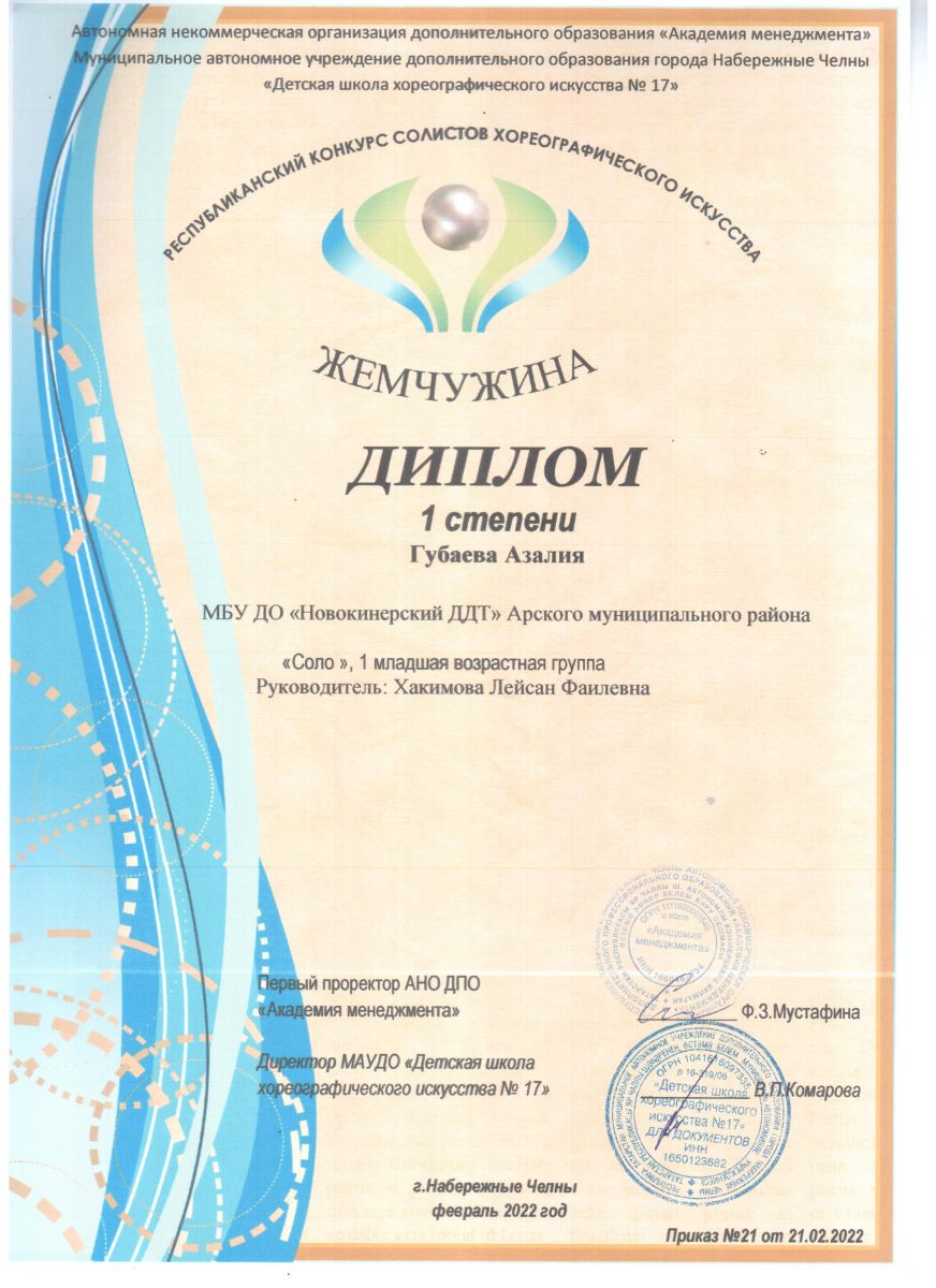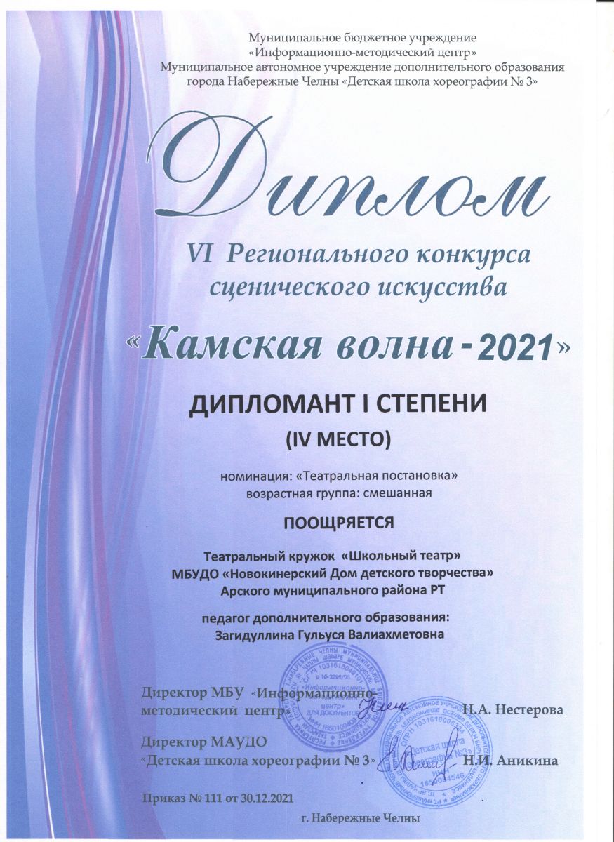 Диплом дипломанта 1 степени - "Камская волна 2021" (коллектив)