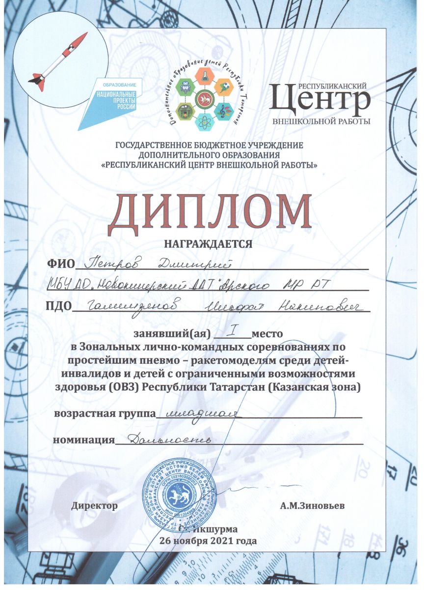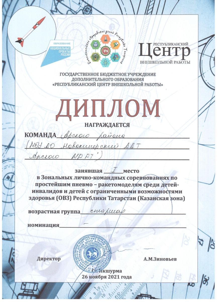 1 место- Соревнования по простейшим пневмо-ракетомоделям
