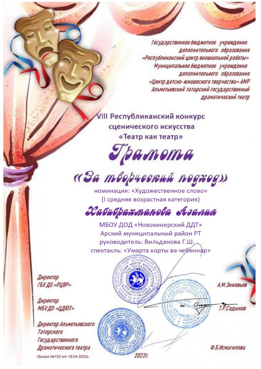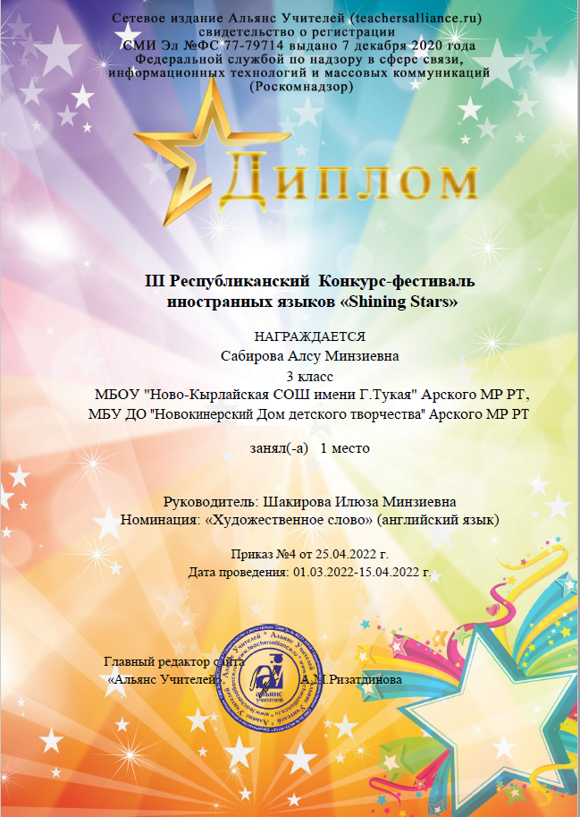 Диплом лауреата 3 степени - "Читаем Тукая"