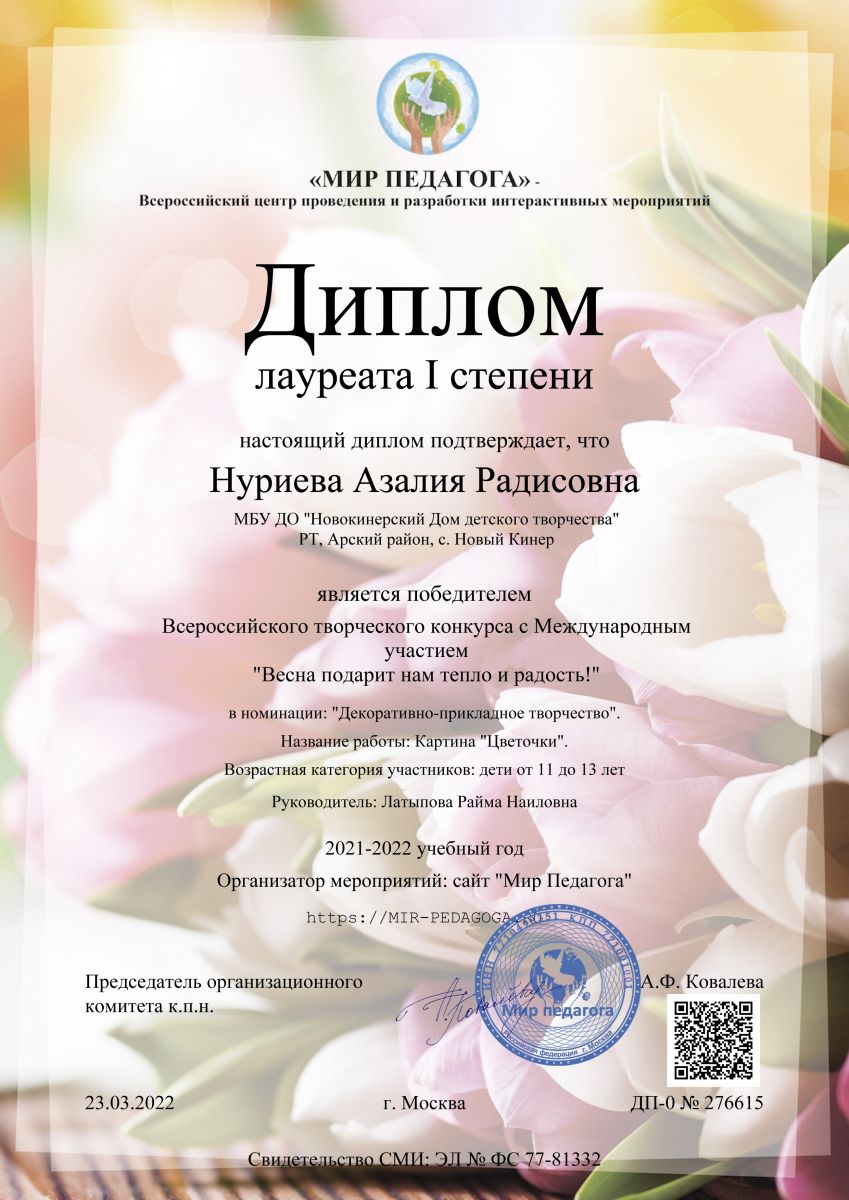 Диплом лауреата 1 степени - "Весна подарит нам тепло и радость"