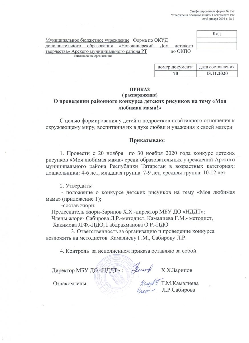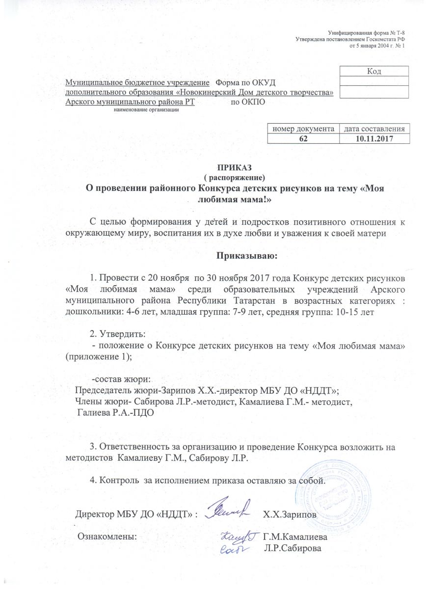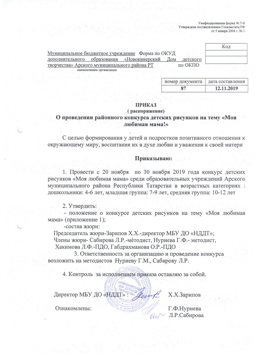 приказ о проведении раойнного Конкурса детских рисунков "Моя любимая мама!"