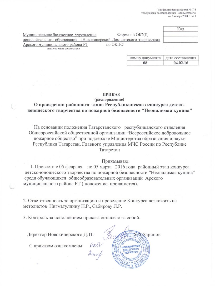 приказ о проведении районного этапа конкурса "Неопалимая купина"