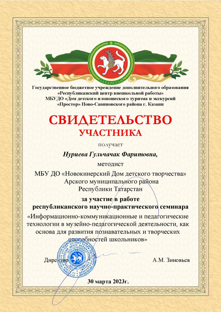 Муниципальное бюджетное учреждение дополнительного образования «Новокинерский Дом детского творчества" Арского муниципального района Республики Татарстан/Татарстан Республикасы Арча районы "Яна Кенәр балалар иҗаты Йорты" өстәмә белем муниципаль бюджет учреждениесе