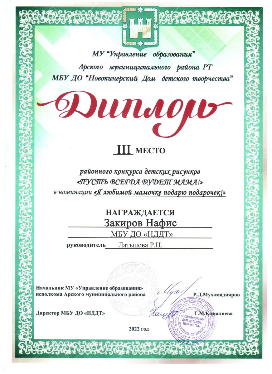 Диплом лауреата - "Бәхет биргән туган җирем"
