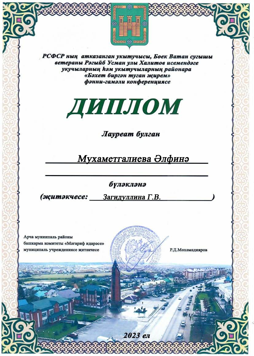 Диплом Лауреата - "Бәхет биргән туган җирем"