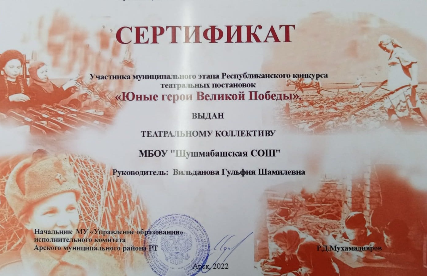 Сертификат участника - "Юные герои великой победы" (коллектив)