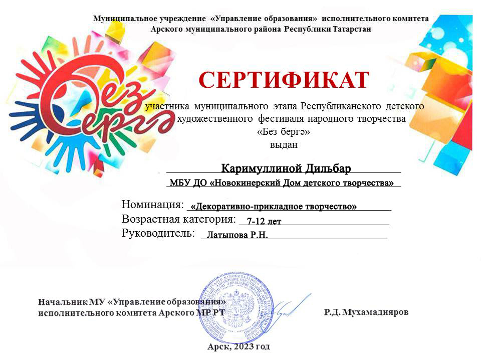 Муниципальное бюджетное учреждение дополнительного образования «Новокинерский Дом детского творчества" Арского муниципального района Республики Татарстан/Татарстан Республикасы Арча районы "Яна Кенәр балалар иҗаты Йорты" өстәмә белем муниципаль бюджет учреждениесе