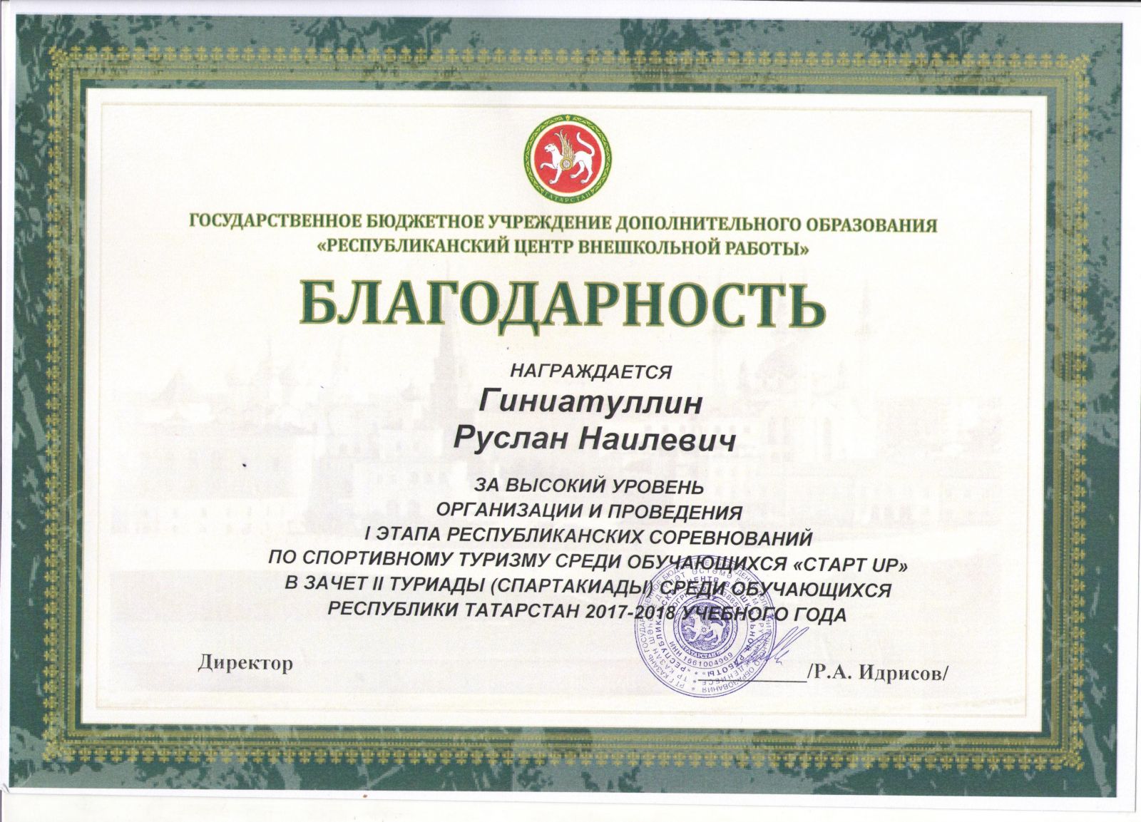 Благодарственное письмо за проведение 1 этапа Республиканских соревнований по туризму.jpeg