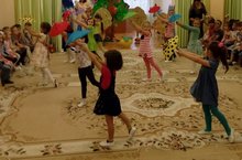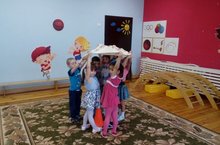 Воспитанники старшей группы №1 тоже заинтересованы такими играми. Например, играя в игру «Юрта» они с удовольствием поют в хороводе веселую песню, а после окончания музыки бегут к своим домам, поднимают над головой свой платок, образуя юрту, обозначающую по – башкирски дом.