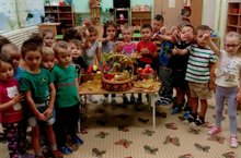 В нашем детском саду прошли осенние утренники. Дети радовались красоте осеннего леса, богатому урожаю полей. Вместе с красавицей осенью пели песни, рассказывали стихи, танцевали и играли в игры. Почетным гостем осенних праздников старшей группы №2 и подготовительной группы стала эколог северного территориального управления экологии РТ Латыш Ф.К.