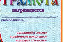 В целях выявления наиболее способных и одаренных детей , повышения профессионального уровня музыкальных руководителей детских коллективов, укрепления творческих и деловых контактов дошкольных образовательных учреждений прошел районный конкурс "Голосок". Вокально-хореографический ансамбль "Инеш" нашего детского сада (руководитель Закирова Р.Н., Гилязиева И.М.) заняли первое место. Молодцы!!!