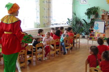 Сегодня воспитатель средний группы и воспитатель по художественно - эстетическому циклу Муллагалеева Г.Ф. показали интегрированное развлечение " Мои любимые игрушки". К детям в гости пришла Петрушка. Они вместе отгадывали загадки, рисовали, отвечали на вопросы. В конце занятия Петрушка показала детям фокусы, детям очень понравилось.