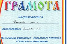8 декабря наш детский сад принял активное участие в районном конкурсе "Голосок". В конкурсе принимали участие творческие коллективы и отдельные исполнители-воспитанники дошкольных образовательных учреждений. Жюри оценивало по следующим критериям: оригинальность, техника исполнения, сложность, эмоциональность, уровень артистизма, художественное оформление номера. Наши юные исполнители Фатыхова Лейля и Шарафеев Айнур были награждены грамотами и памятными призами.