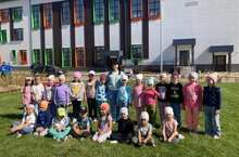 На улице Н.Сафина летом была обустроена детская игровая площадка . Сегодня дети подготовительной к школе группы посетили спортивную площадку.