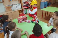 Провели беседу на тему «Важная профессия – пожарный».А так же была экскурсия по детскому саду,где познакомились с пожарной сигнализацией. -