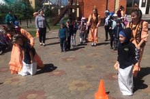 Дошкольное детство - это возраст, когда формируются у детей навыки уважительного и доброжелательного поведения во время взаимоотношений с представителями разных национальных культур, вырабатывается умение воспринимать окружающее как результат сотрудничества людей разных национальностей. В целях воспитания толерантных отношений к национальным культурам народов Поволжья в нашем детском саду был организован развлечение «Дружат дети всей Земли». Дети выучили стихи, показали национальные костюмы, играли народные игры народов Поволжья.