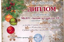 Диплом за участие в районном конкурсе снежных фигур "Новогодний калейдоскоп" в рамках новогодних праздничных мероприятий. 14.01.2020