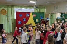 Сегодня в у нас гостях был театр "Весёлый Дэни" из г. Пензы. Дети были в восторге от конкурсно-игровой программы "Три сигнала светофора" по правилам дорожного движения. В конце представления был шоу мыльных пузерей