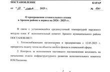 1. Теплоснабжающим организациям и предприятиям с 12.05.2025г. прекратить подачу тепла на объекты жилого фонда и социальной сферы.