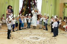 Сегодня в нашем детском саду начались новогодние утренники для детей. Подготовка началась задолго до наступления праздников. Воспитатели с детьми разучивали стихотворения, проводили беседы на тему Нового года, новогодних традиций. Музыкальный руководитель Зимфира Фаридовна разучивала с воспитанниками песни, хороводы и танцы. Огромную работу провели по оформлению групп и музыкального зала. Дети пришли на представление нарядные, весёлые в предвкушении праздника. И их надежды оправдались. Воспитатели участвовавшие в новогоднем представлении, проявили себя хорошими артистами, показав всё своё творческое мастерство, артистизм, задор и организаторские способности. Им пришлось перевоплотиться в разных героев: Снегурочку, Деда Мороза, Снеговика, Лису, Медведя и др. С самого начала представления сказочные герои увлекли детей в волшебный мир сказки. Дети смогли окунуться в праздничную атмосферу приключений, поучаствовать в интересных конкурсах, играх.