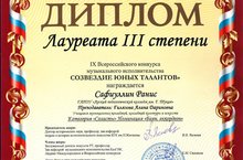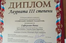 16 декабря в г.Казань состоялся IX Всероссийский конкурс музыкального исполнительства, где наш студент Сафиуллин Ранис занял 3 место Лауреата, руководитель Гилязова Алина Дариновна.