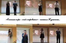 В предпоследний день золотой осени – любимой поры великого русского поэта Александра Сергеевича Пушкина – в Арском педколледже прошел конкурс чтецов. В актовом зале собрались истинные любители бессмертных творений Александра Сергеевича. Чарующие звуки вальса, с которого начался конкурс, настроили всех на прекрасную поэтическую волну. Итак, началось…