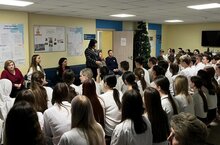 В холле нашего колледжа для студентов I - го курса состоялся торжественный митинг, посвящённый Дню Героев Отечества.